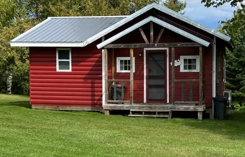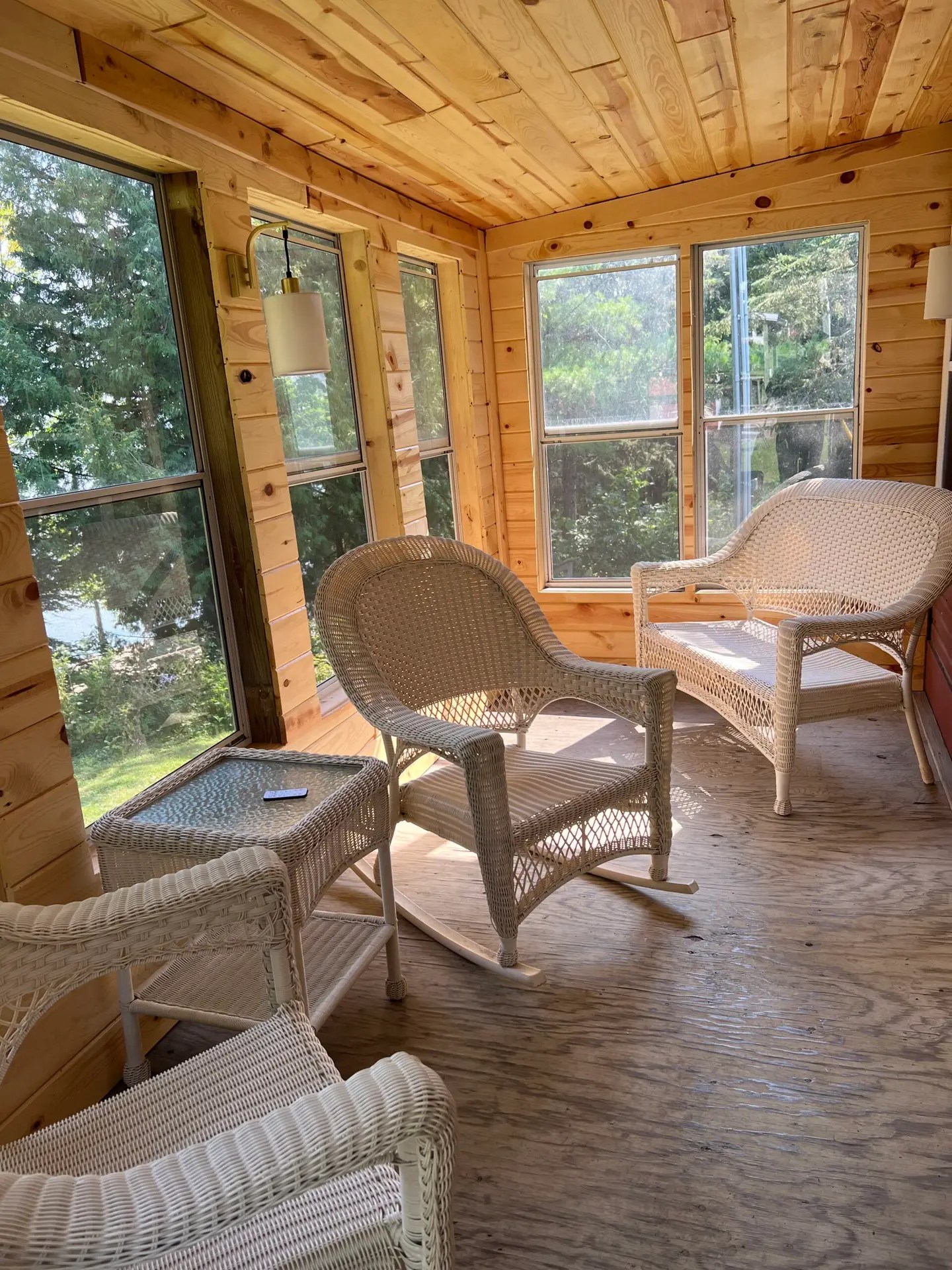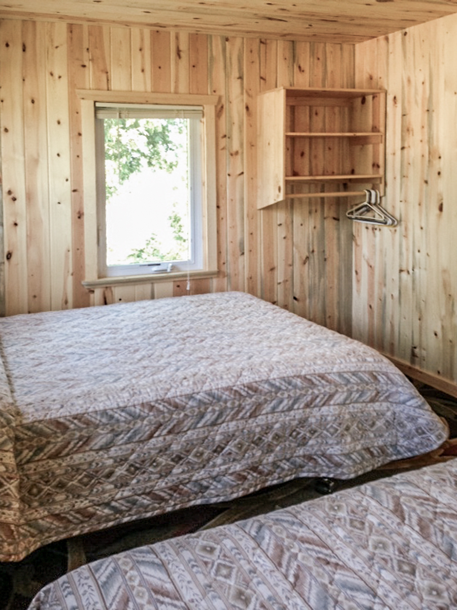 Cabin 1 is closest to the beach and the lodge. Our hickory kitchen with maple floors includes an eat in dining area. Our two bedroom plan gives plenty of bed space with 2 queen beds, 1 full size bed and a twin bed. You can watch all the activity at the beach or on the docks from the screened porch. For those cooler and warmer days a mini split heat and AC unit is installed for your comfort. A fire pit, picnic table and charcoal grill are included. Ages 3 and under are Free.