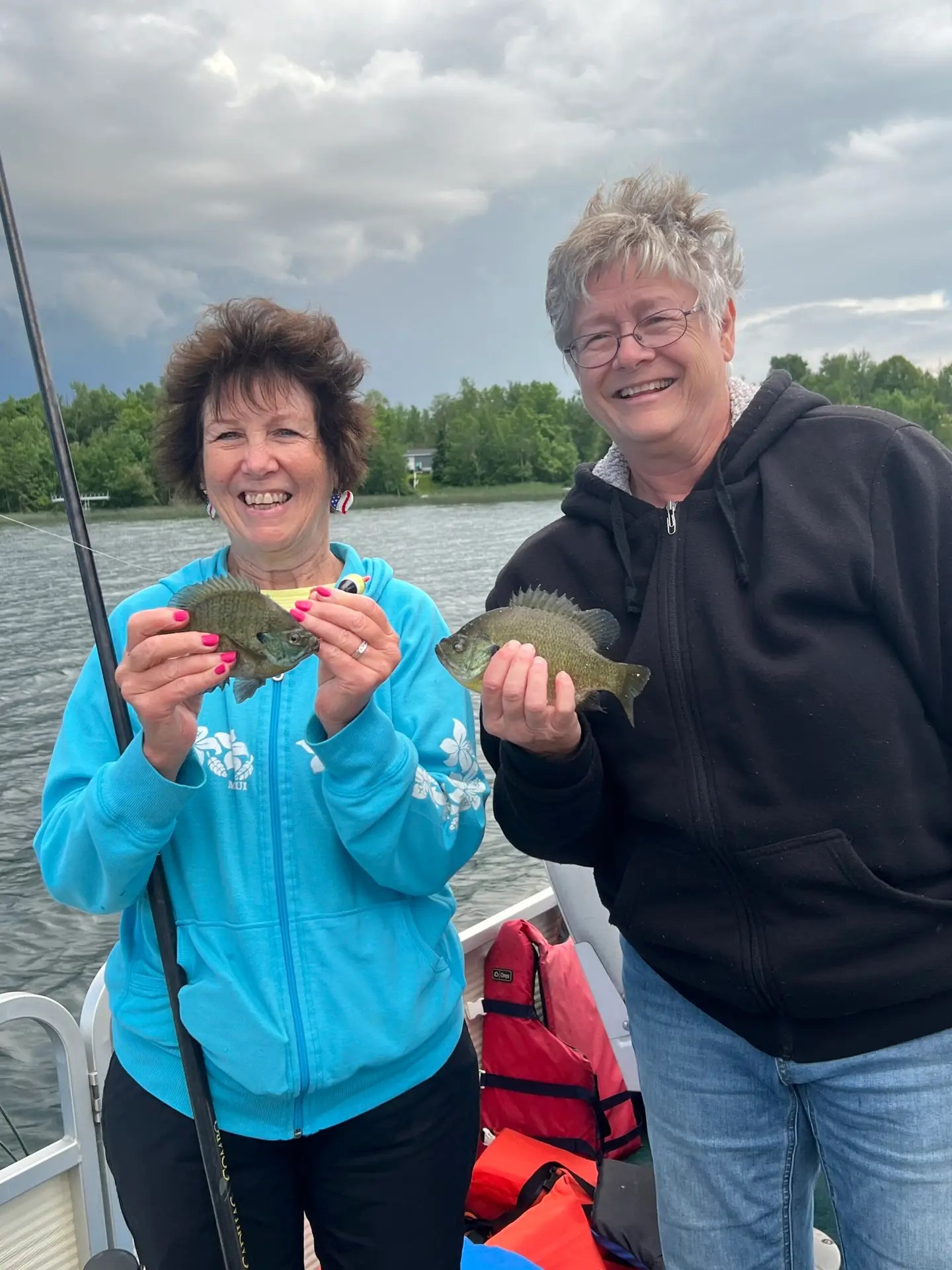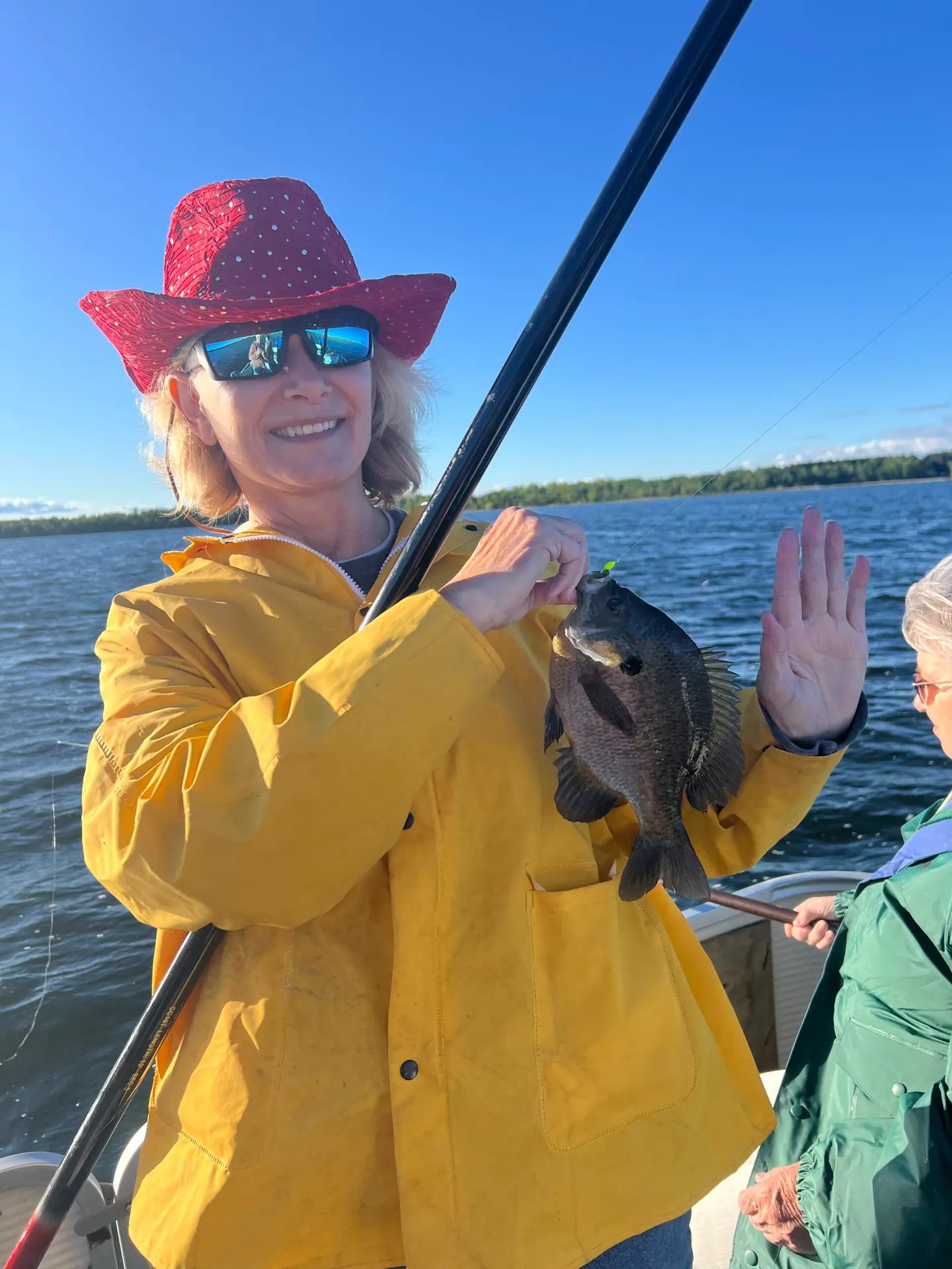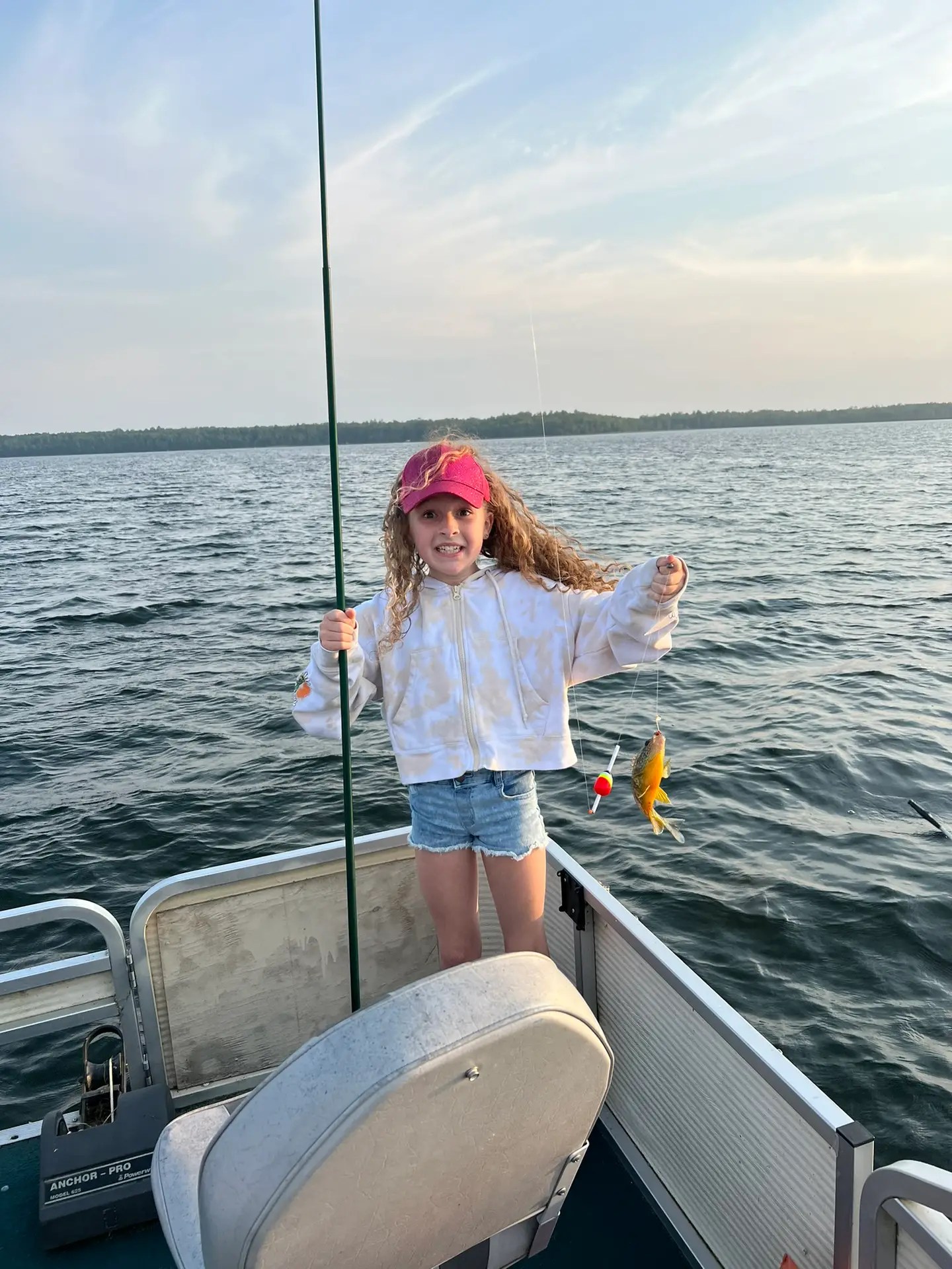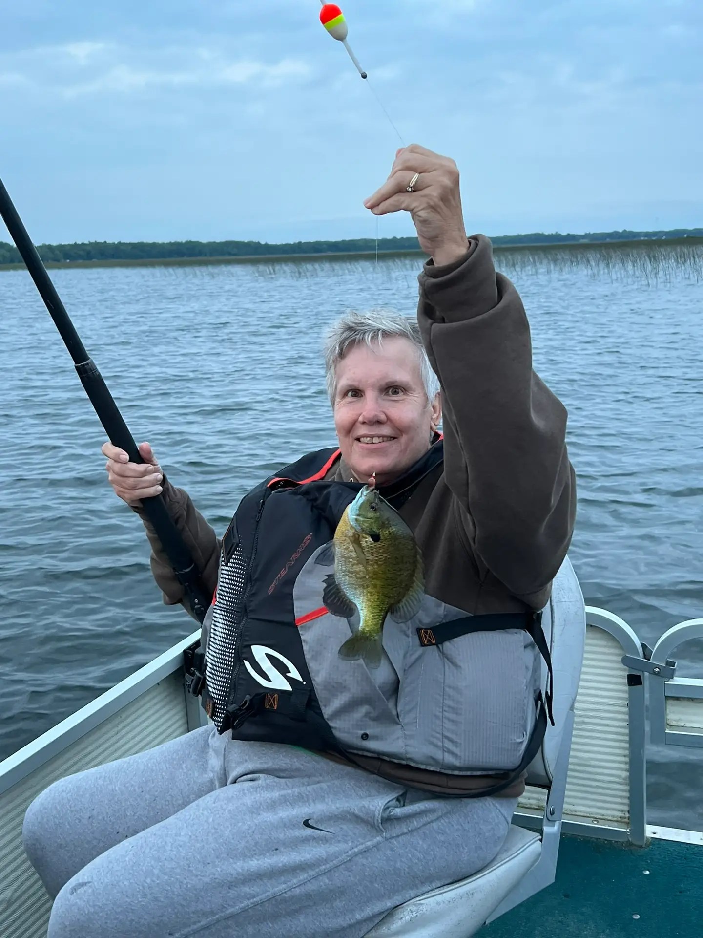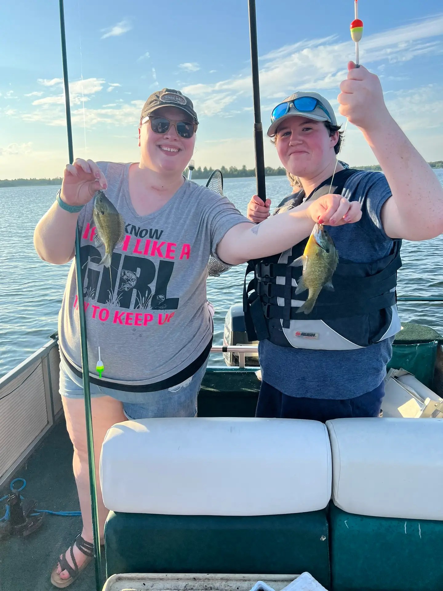 Mandy takes the ladies at the resort out on the pontoon and teaches them how to use cane poles to catch those really BIG bluegills and sunfish. There have been times that a walleye or northern have been caught also. And for those that don’t touch fish or bait; no worries, as Mandy baits the hooks and takes the fish off.