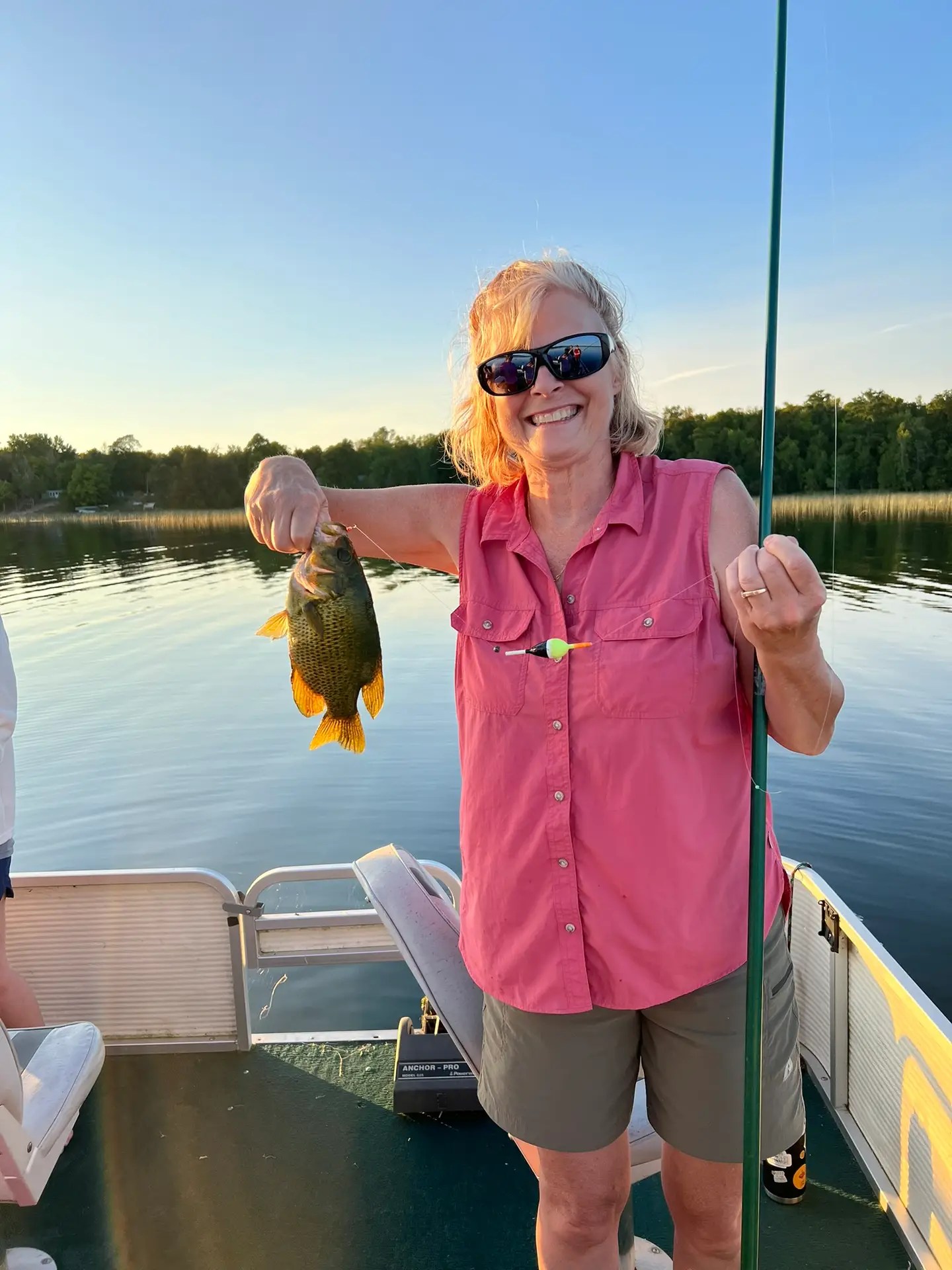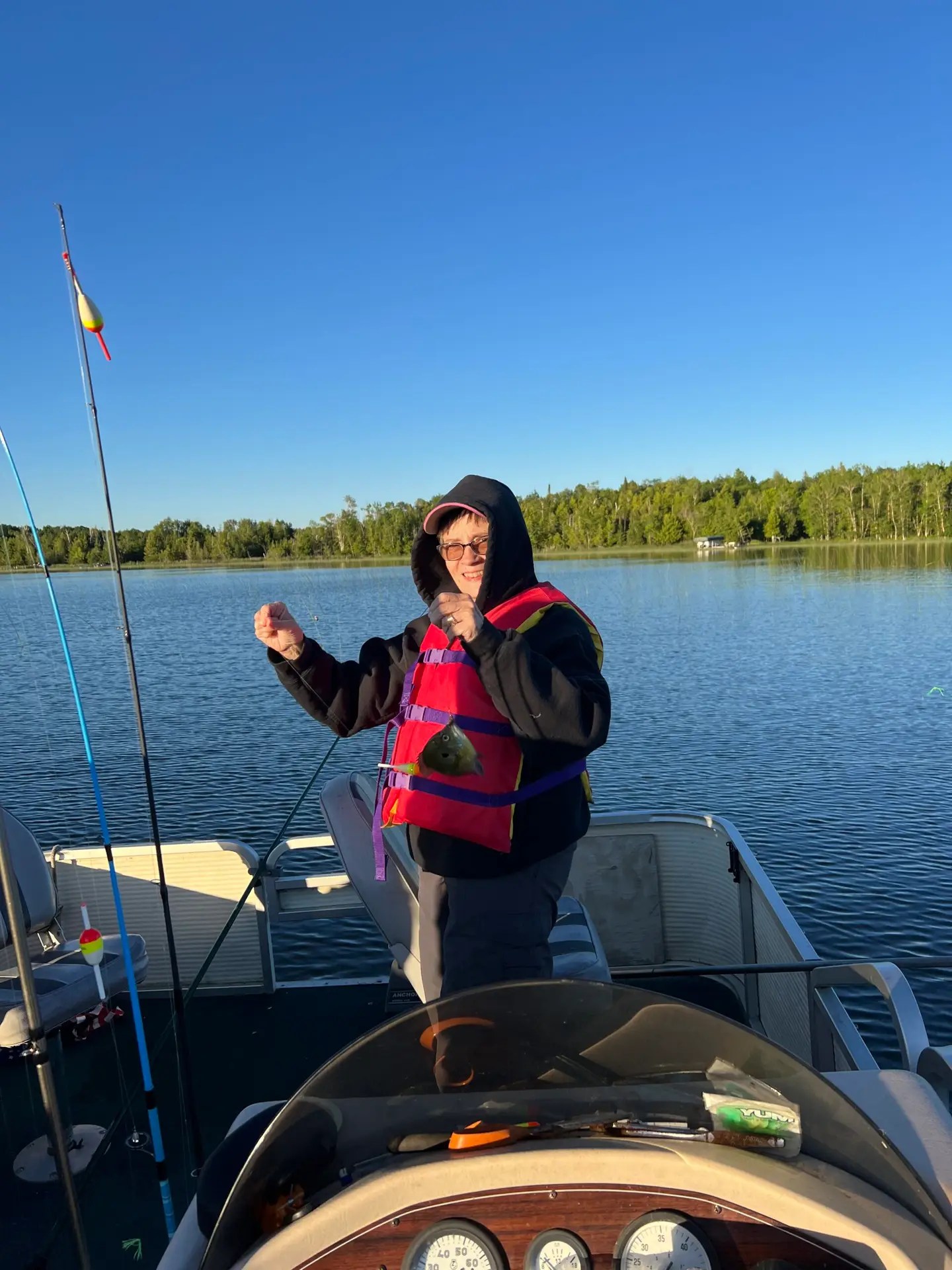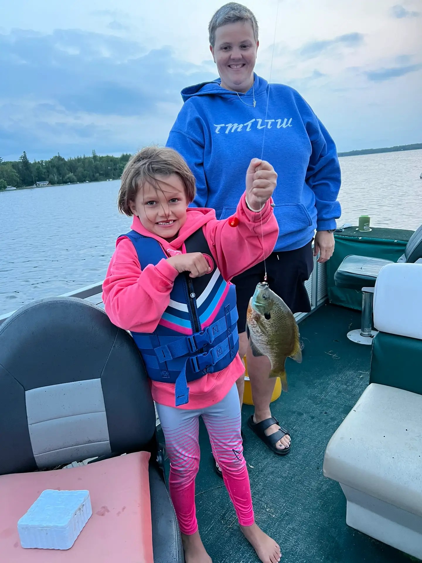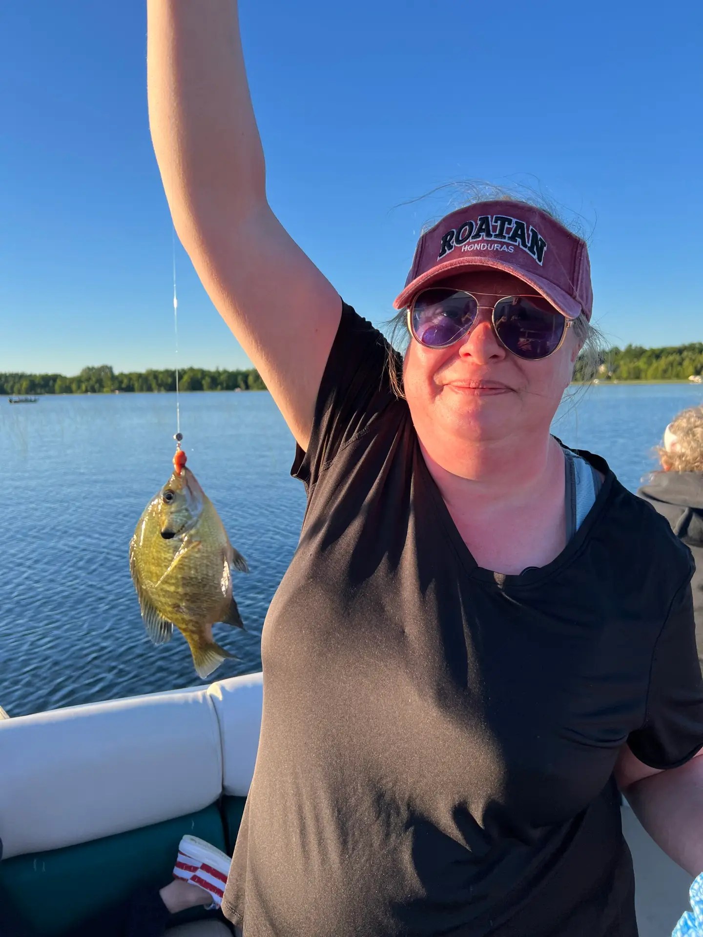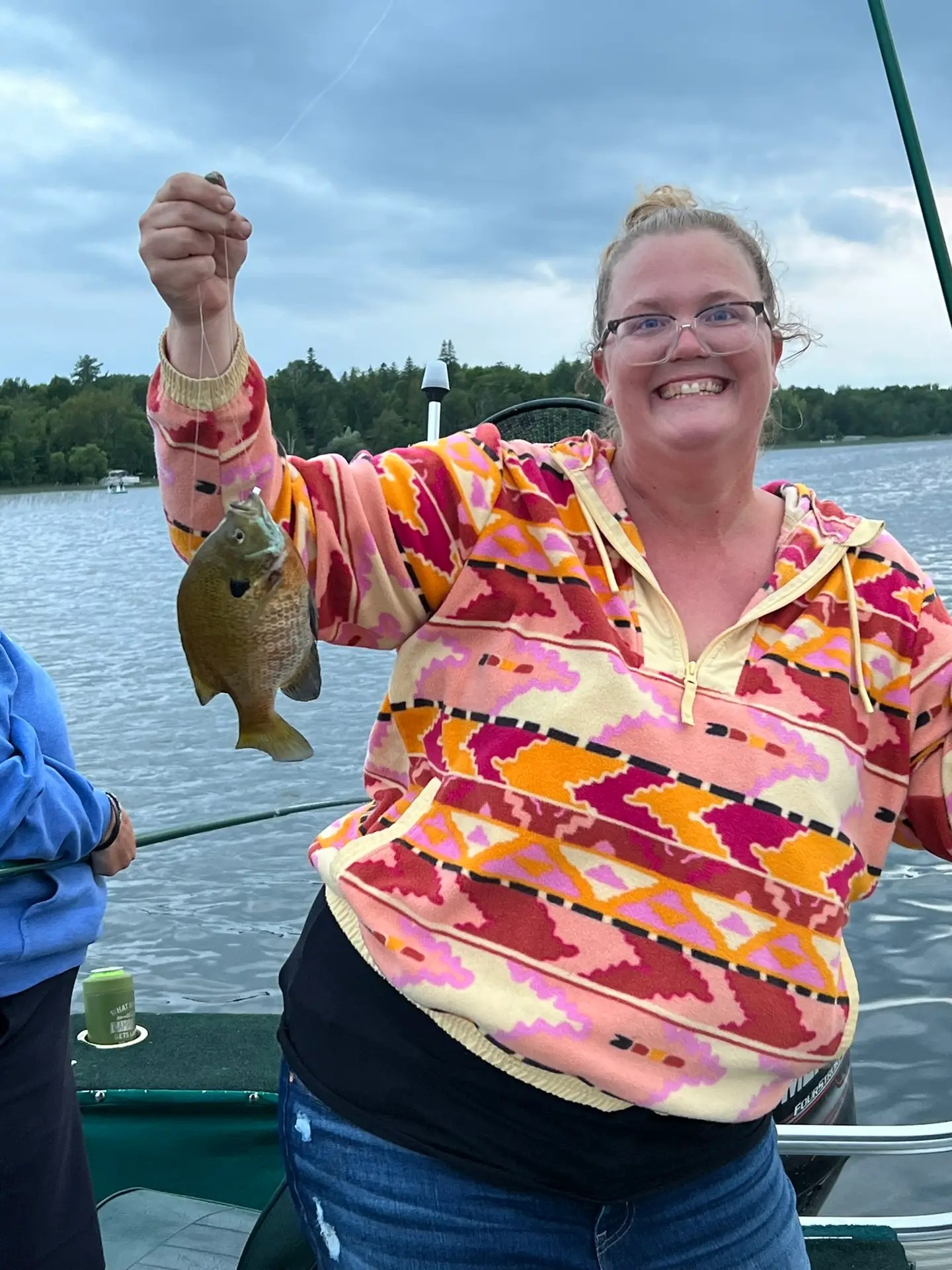 Mandy takes the ladies at the resort out on the pontoon and teaches them how to use cane poles to catch those really BIG bluegills and sunfish. There have been times that a walleye or northern have been caught also. And for those that don’t touch fish or bait; no worries, as Mandy baits the hooks and takes the fish off.