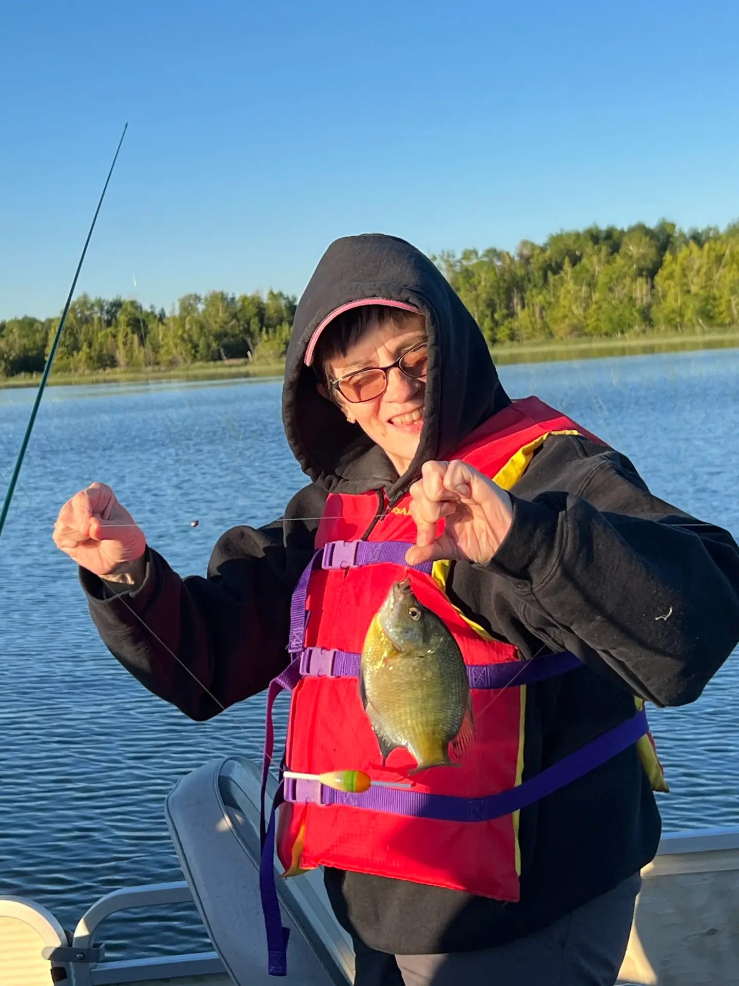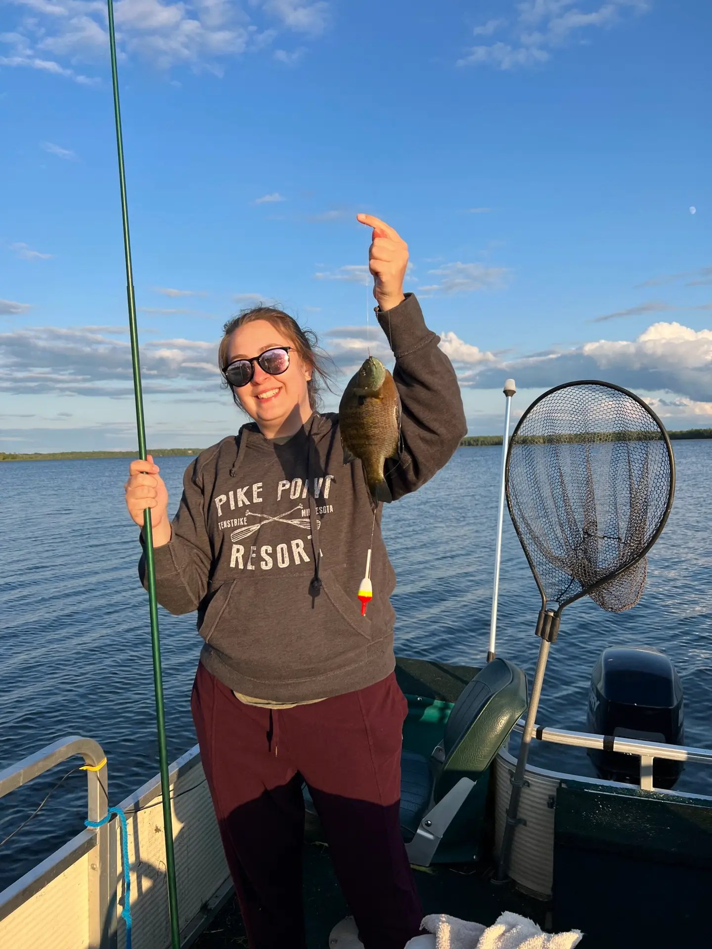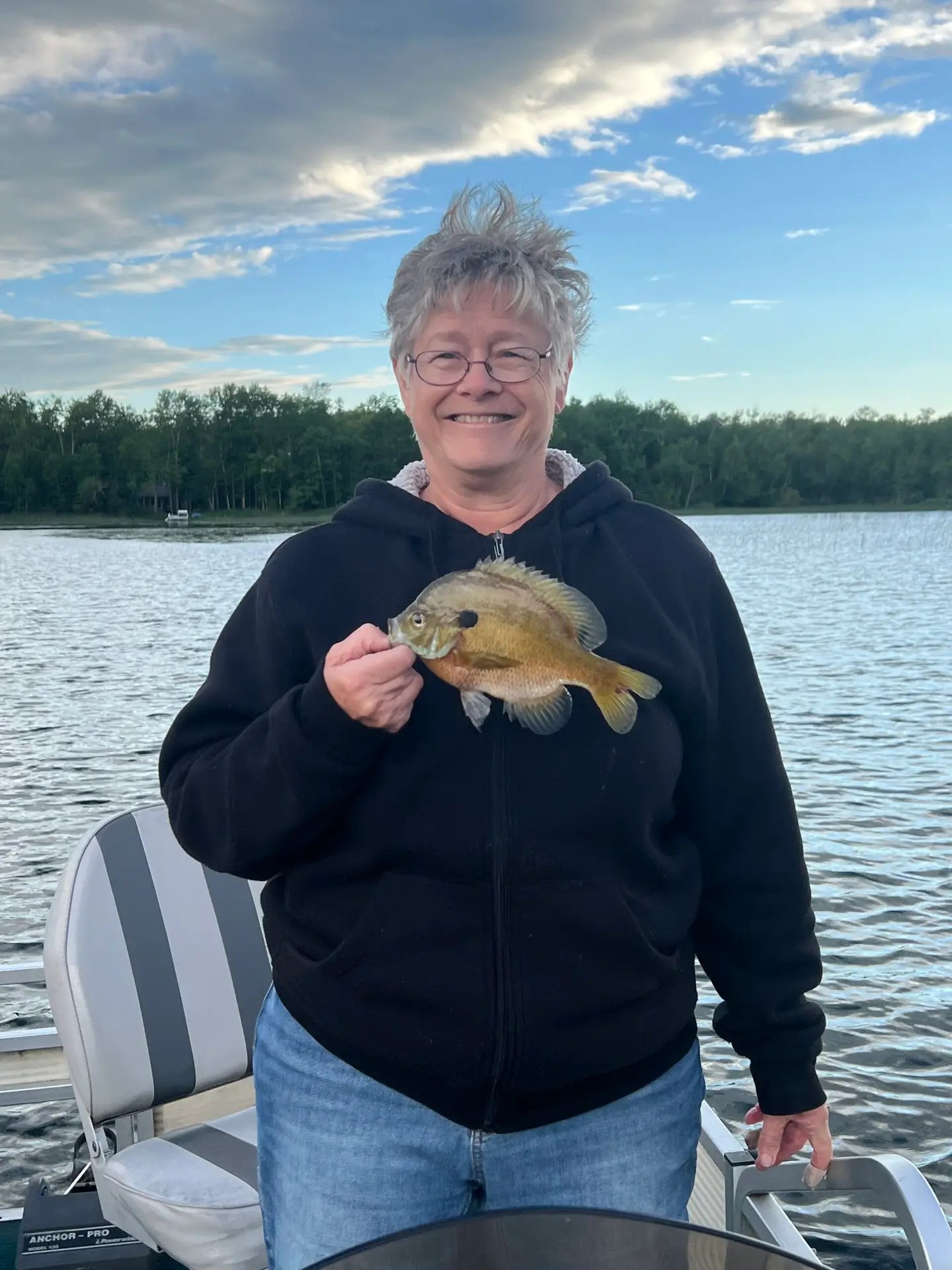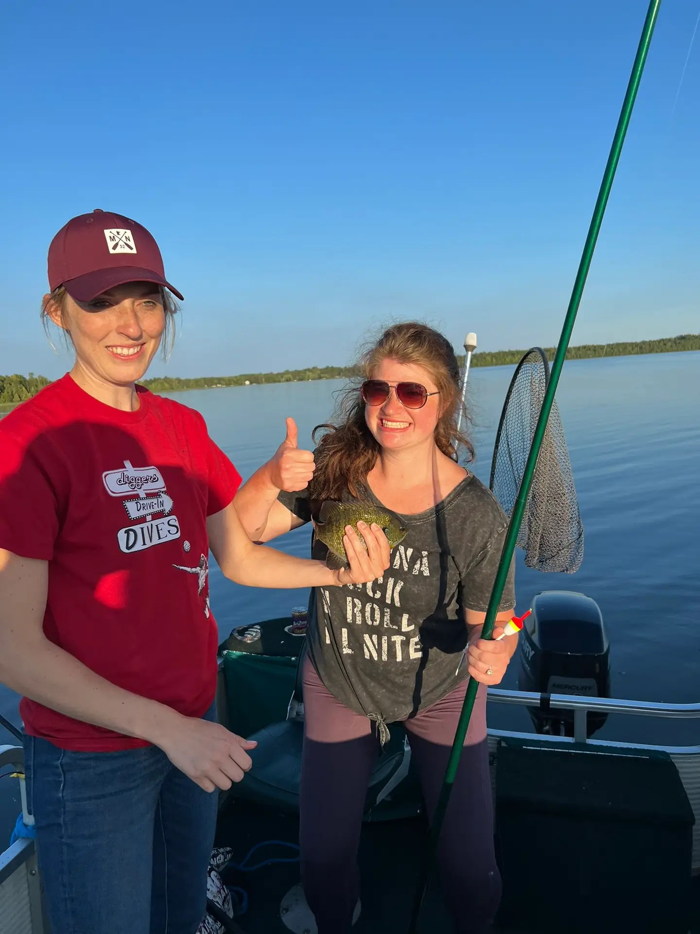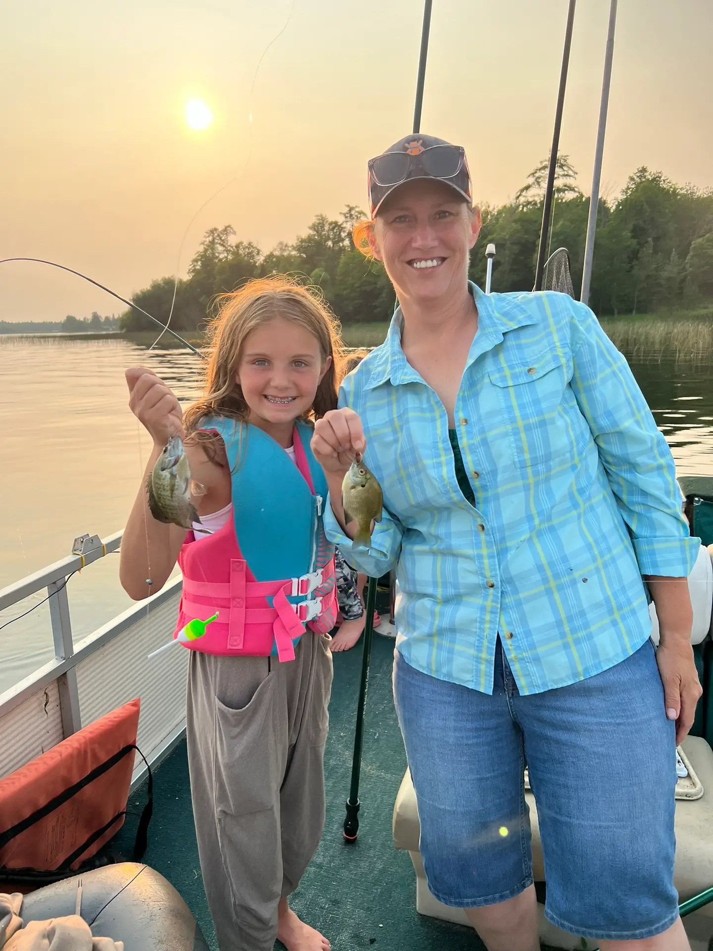 Mandy takes the ladies at the resort out on the pontoon and teaches them how to use cane poles to catch those really BIG bluegills and sunfish. There have been times that a walleye or northern have been caught also. And for those that don’t touch fish or bait; no worries, as Mandy baits the hooks and takes the fish off.