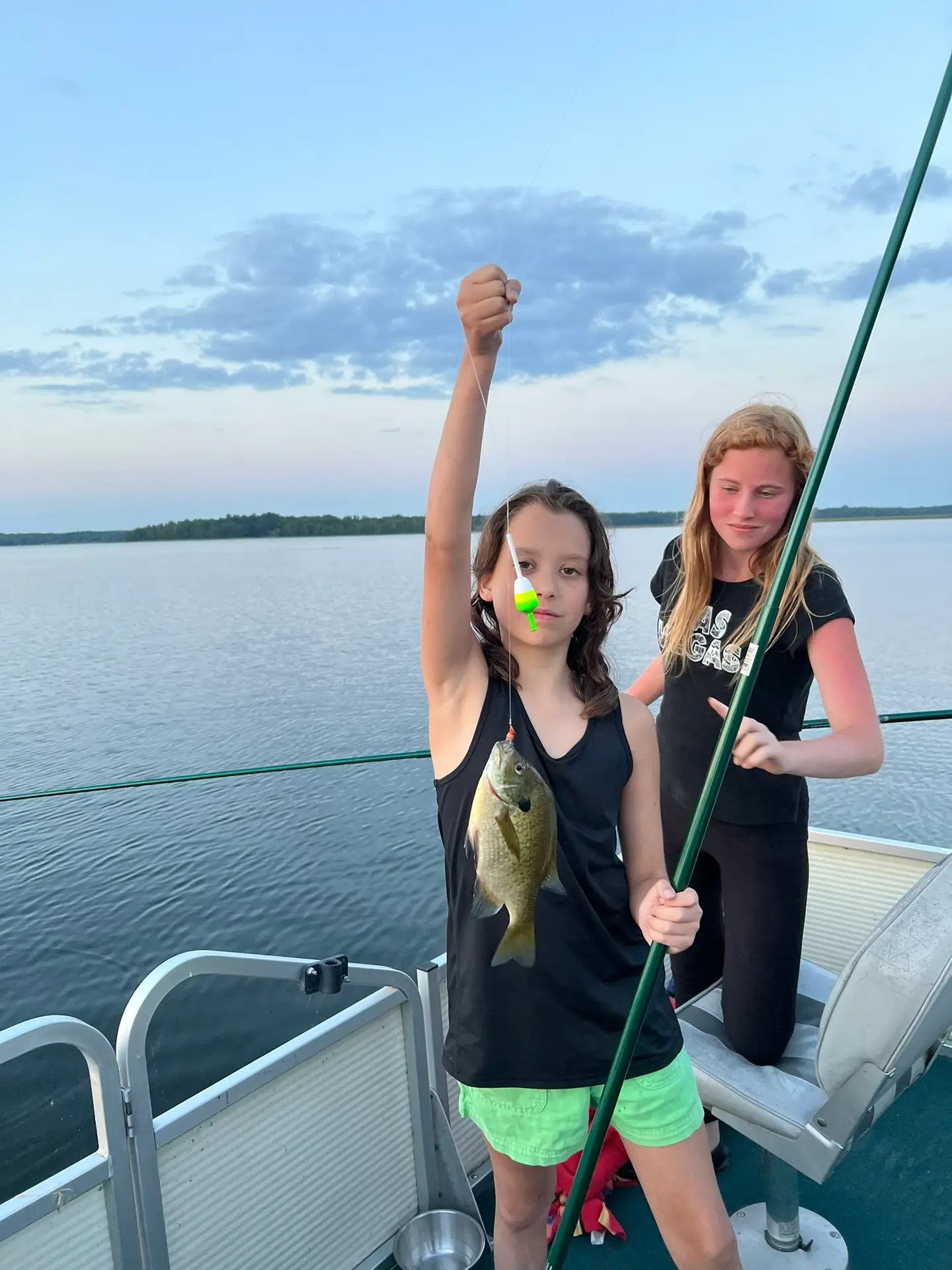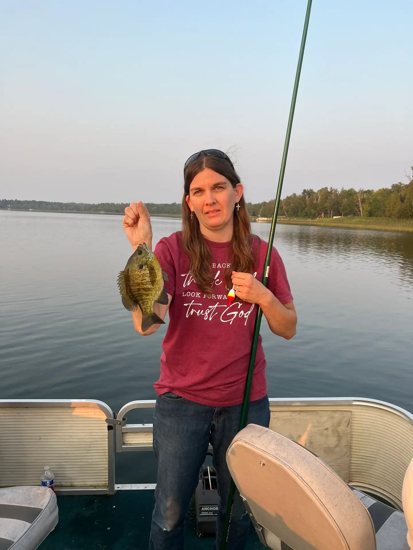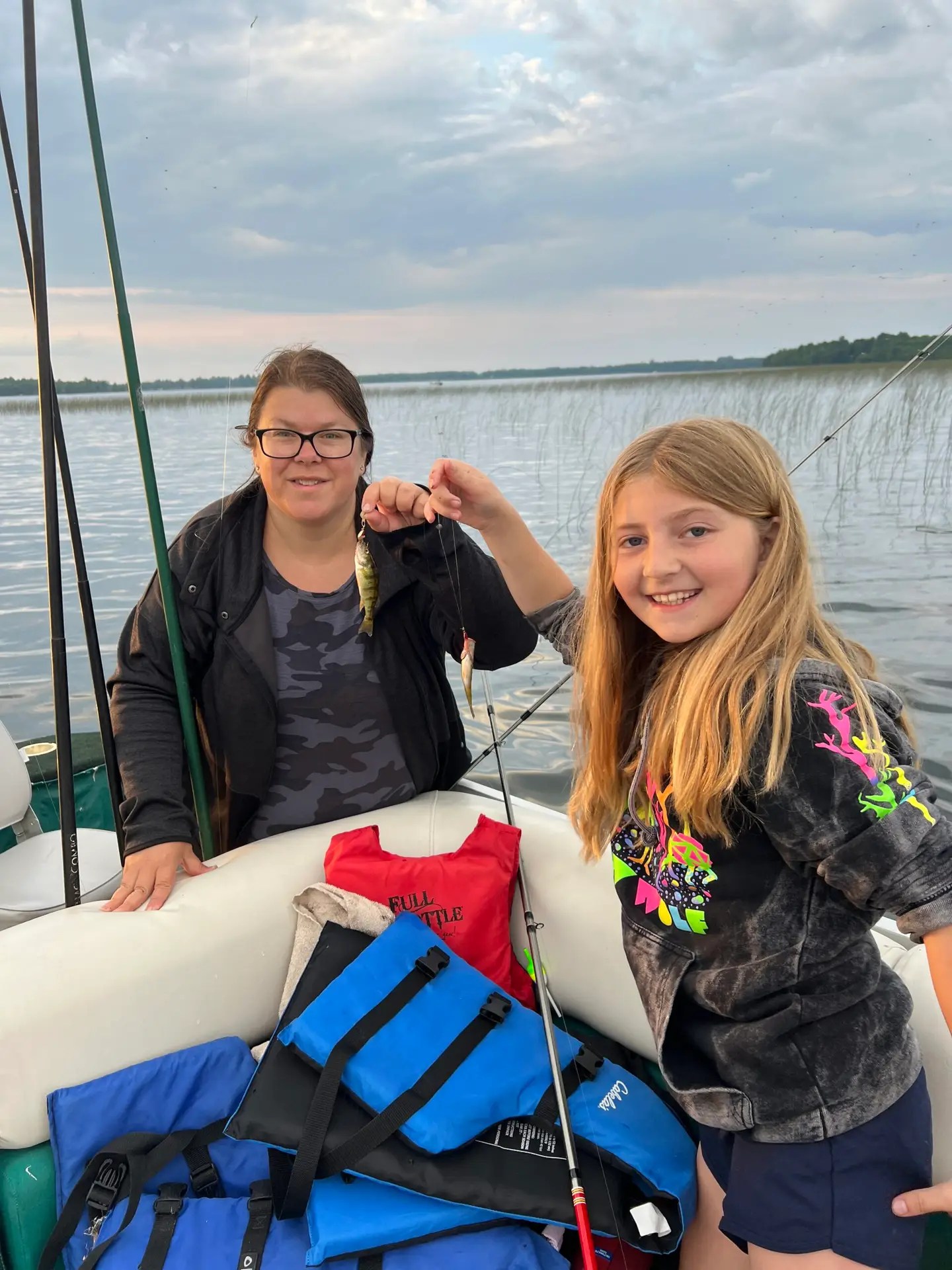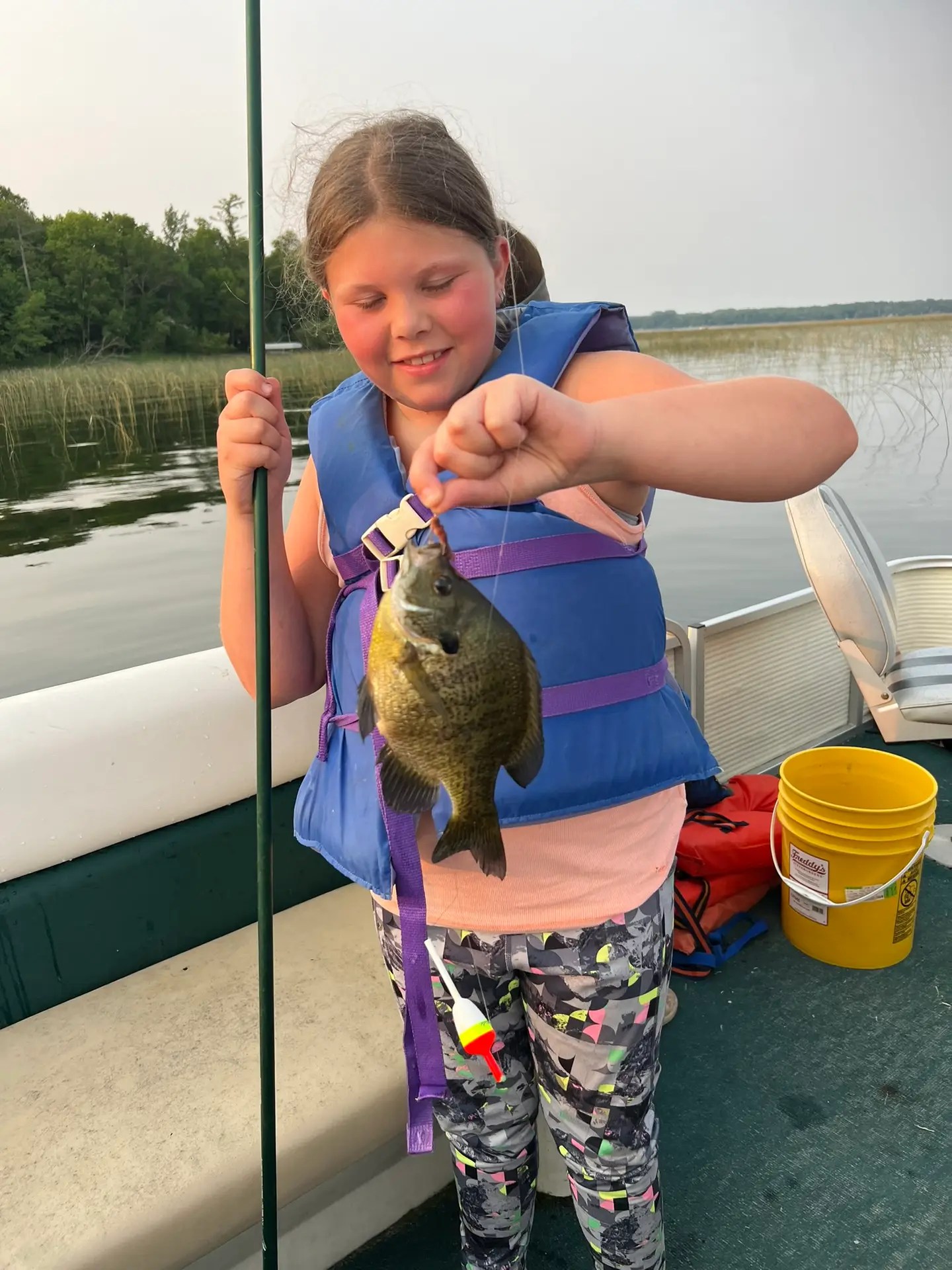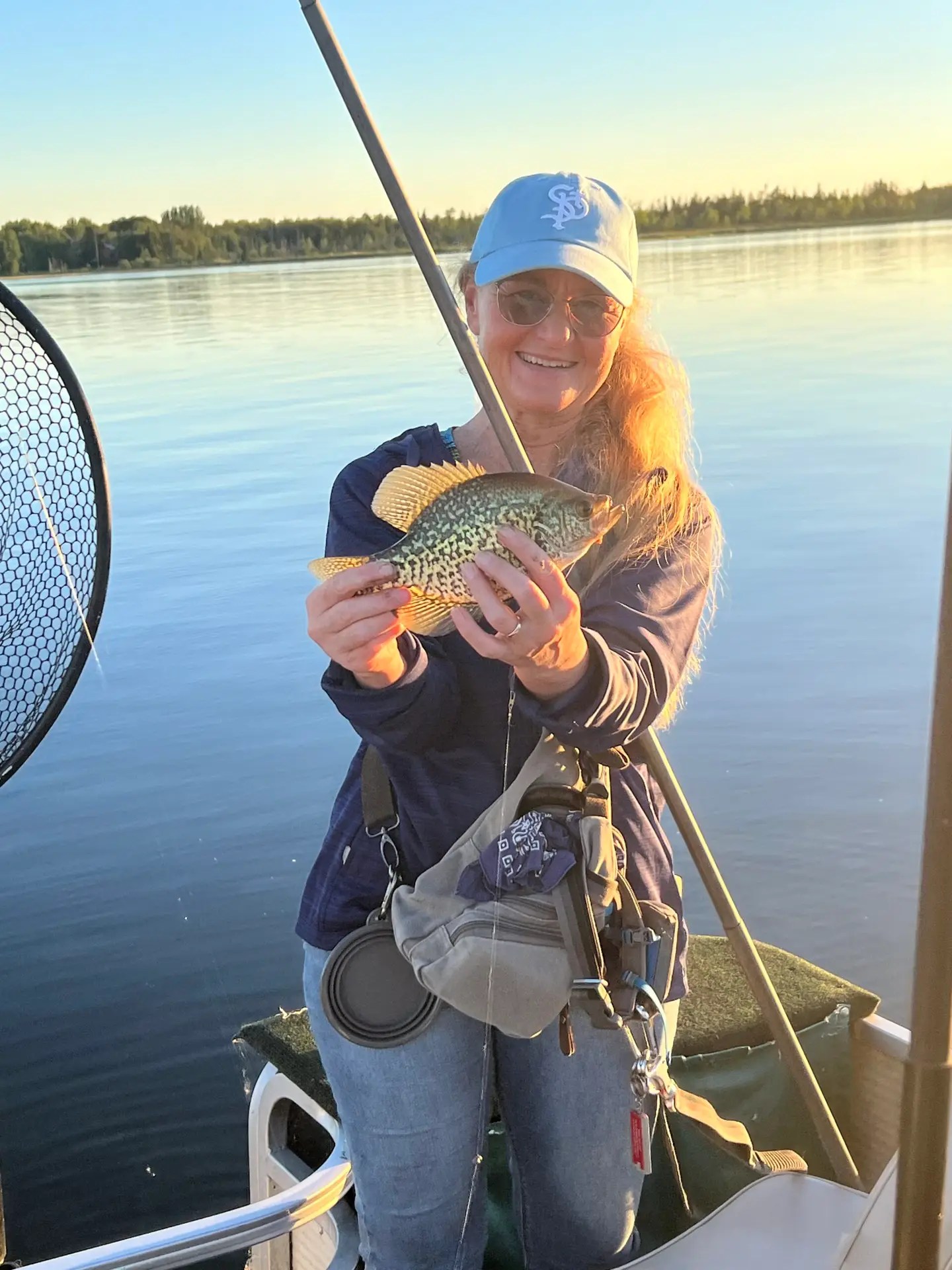 Mandy takes the ladies at the resort out on the pontoon and teaches them how to use cane poles to catch those really BIG bluegills and sunfish. There have been times that a walleye or northern have been caught also. And for those that don’t touch fish or bait; no worries, as Mandy baits the hooks and takes the fish off.