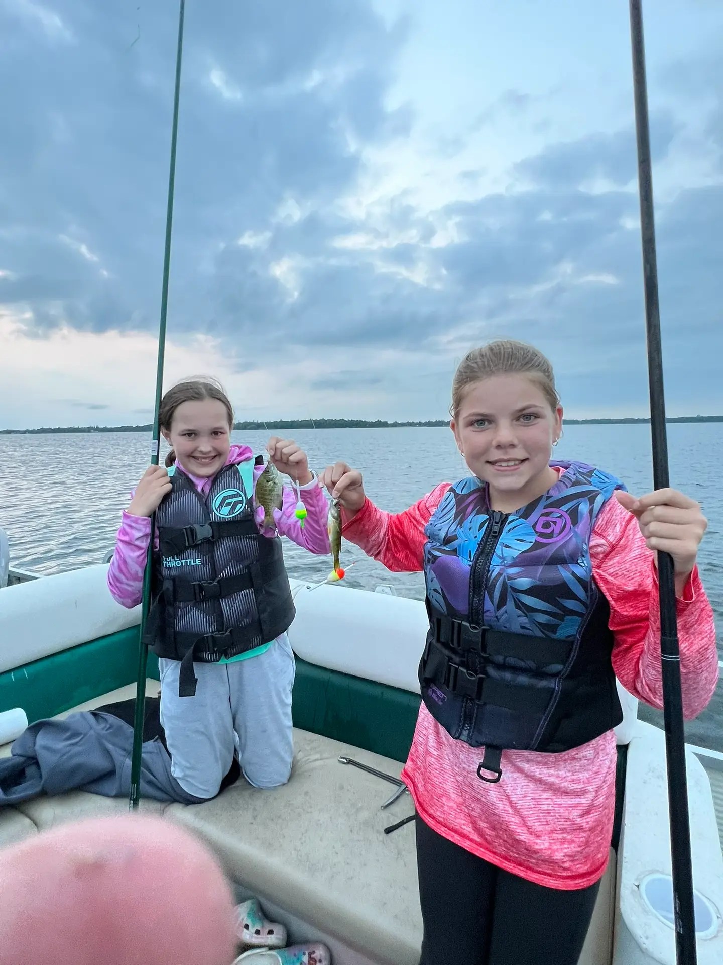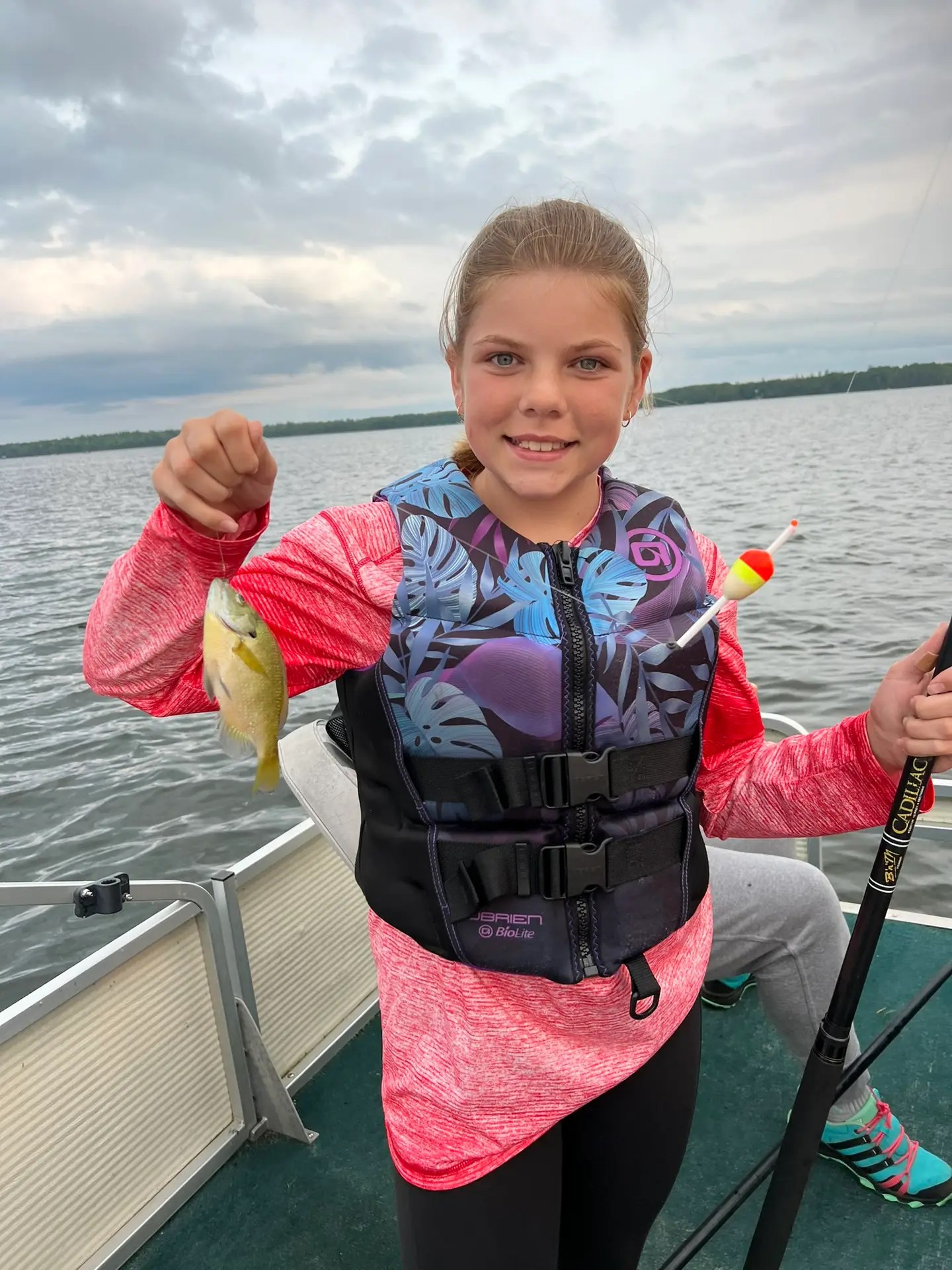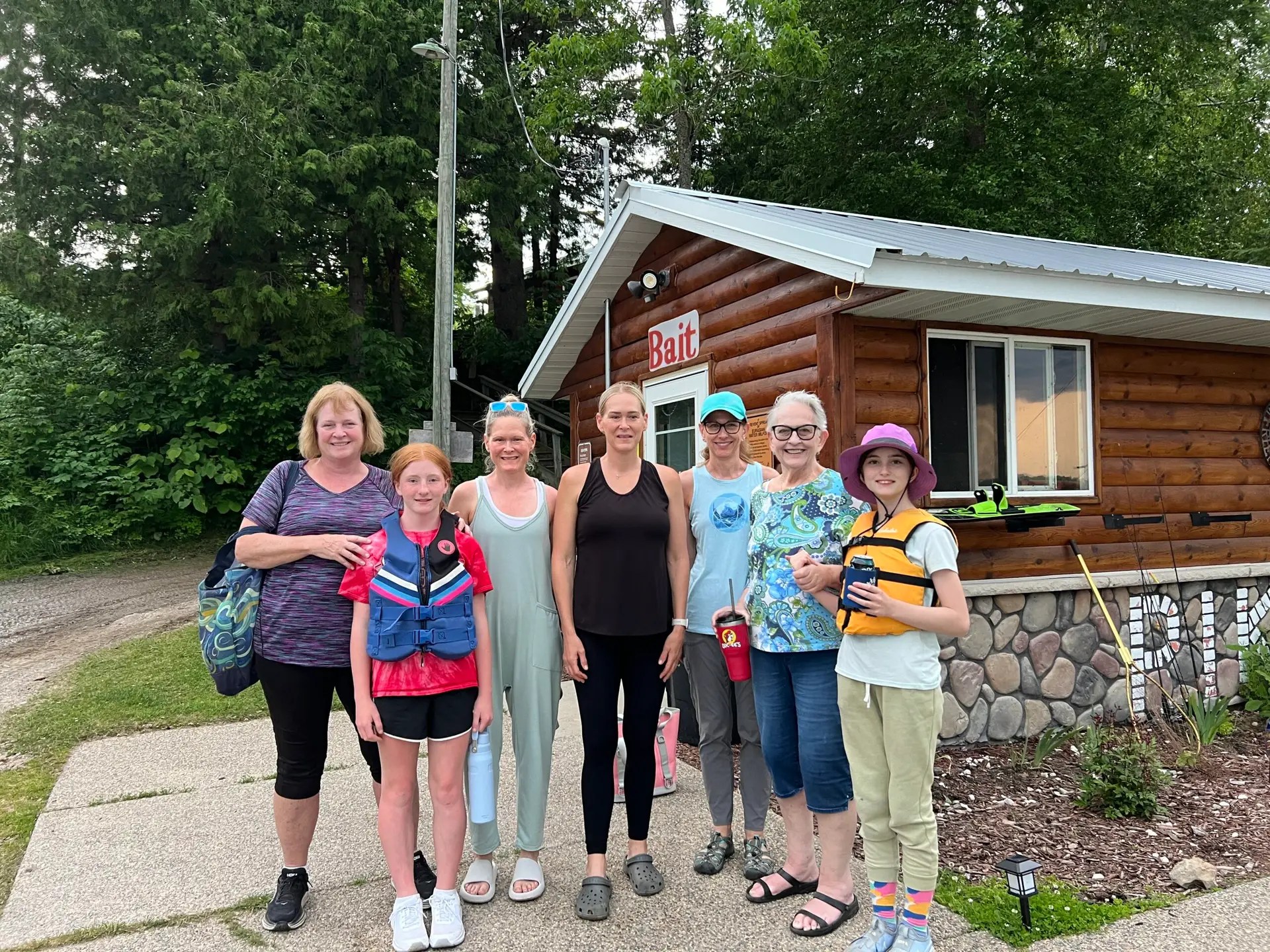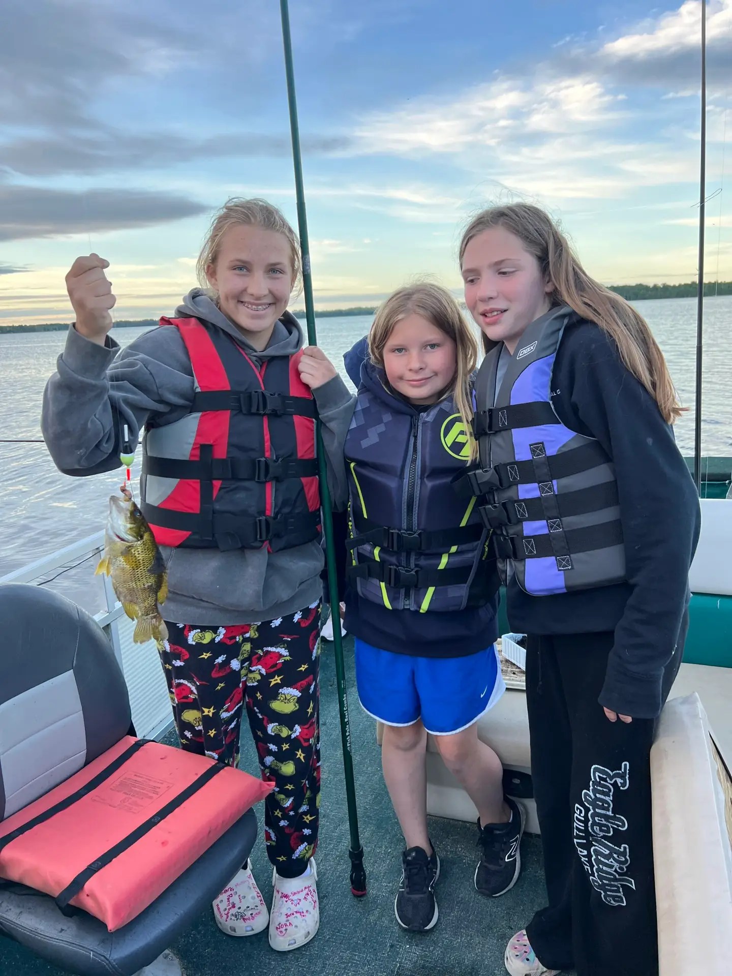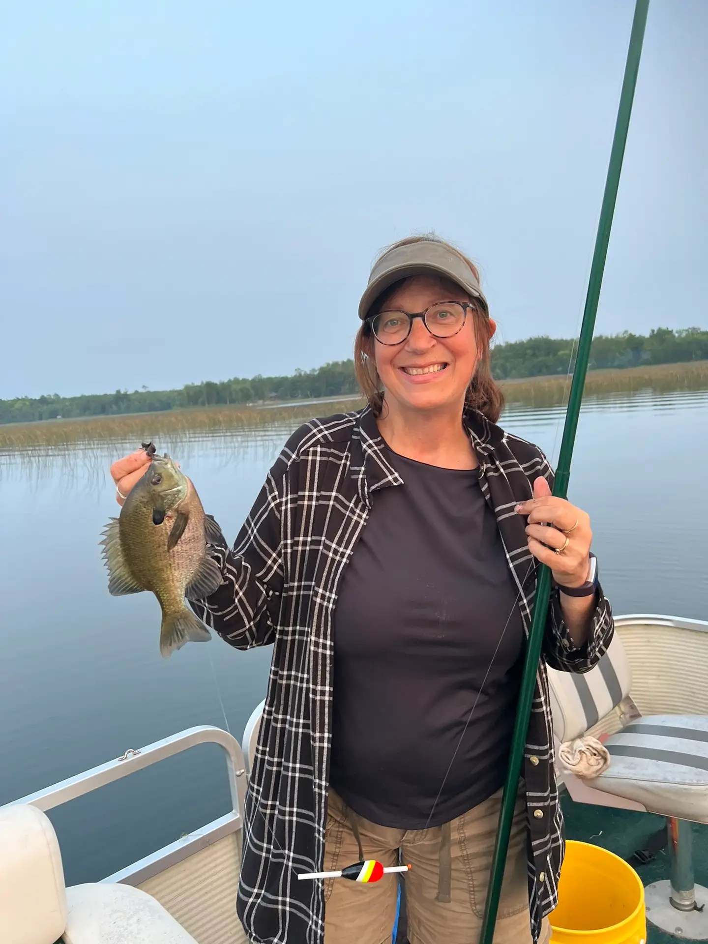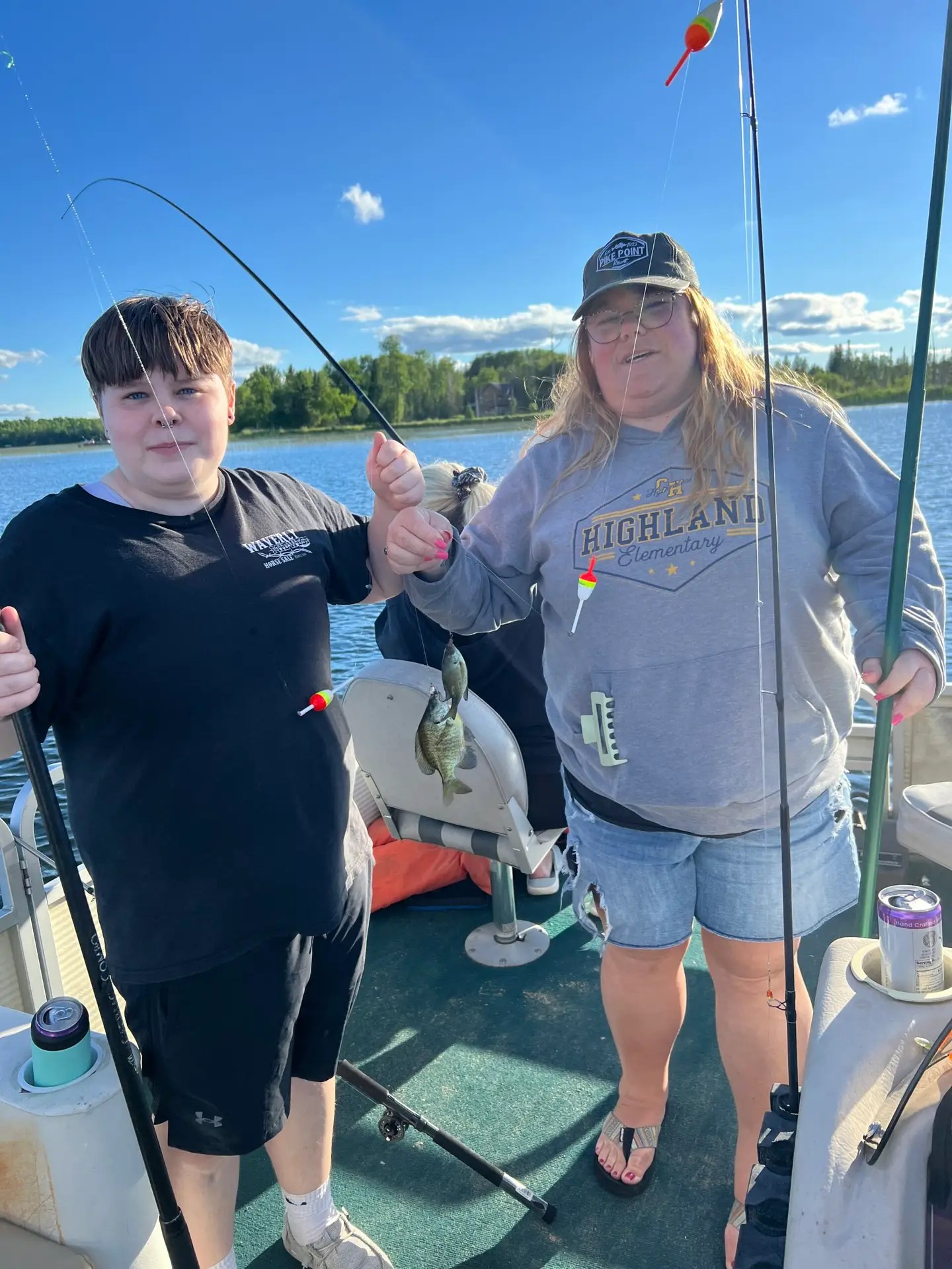 Mandy takes the ladies at the resort out on the pontoon and teaches them how to use cane poles to catch those really BIG bluegills and sunfish. There have been times that a walleye or northern have been caught also. And for those that don’t touch fish or bait; no worries, as Mandy baits the hooks and takes the fish off.