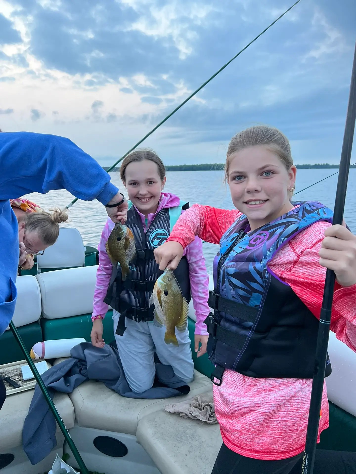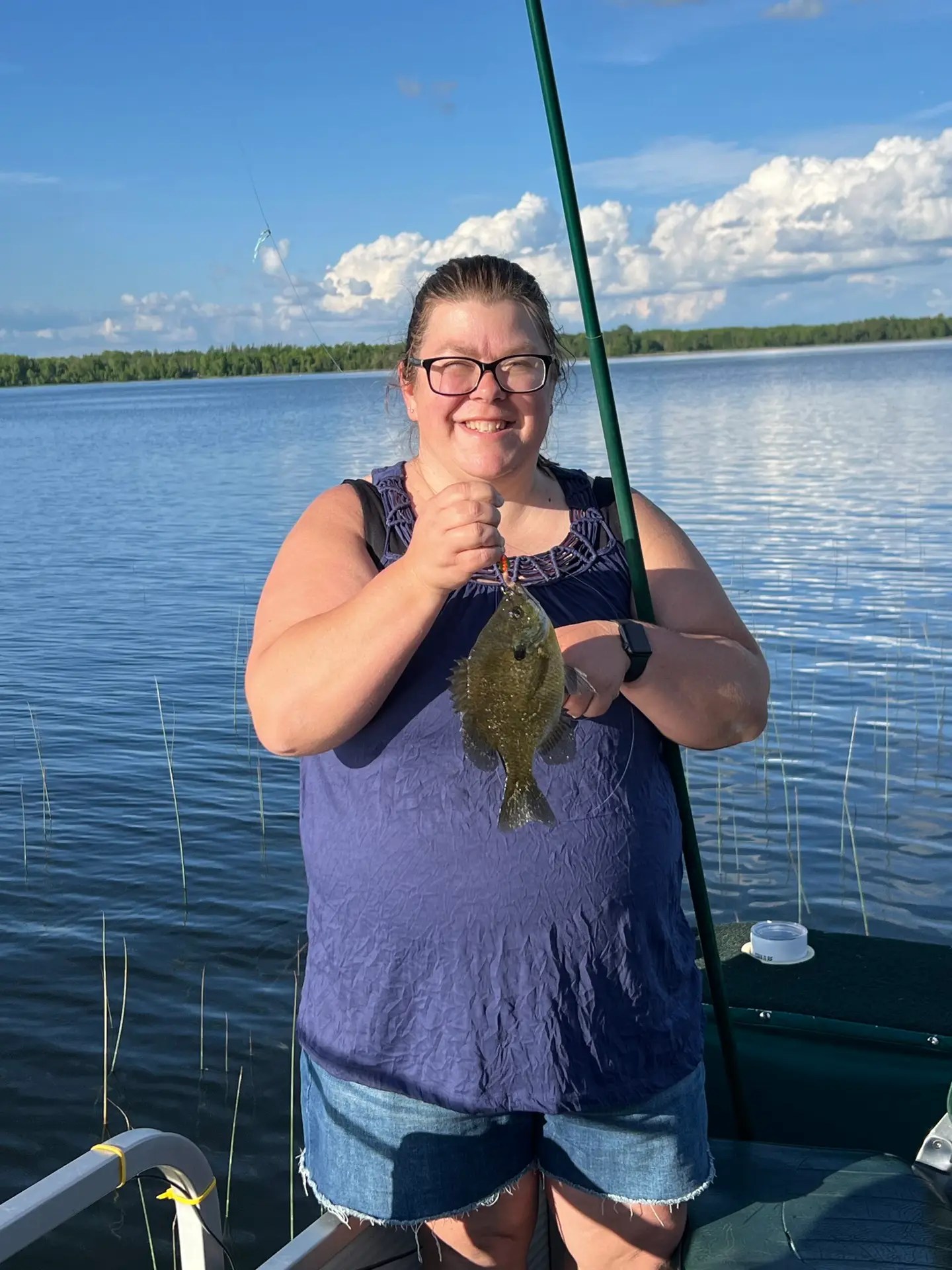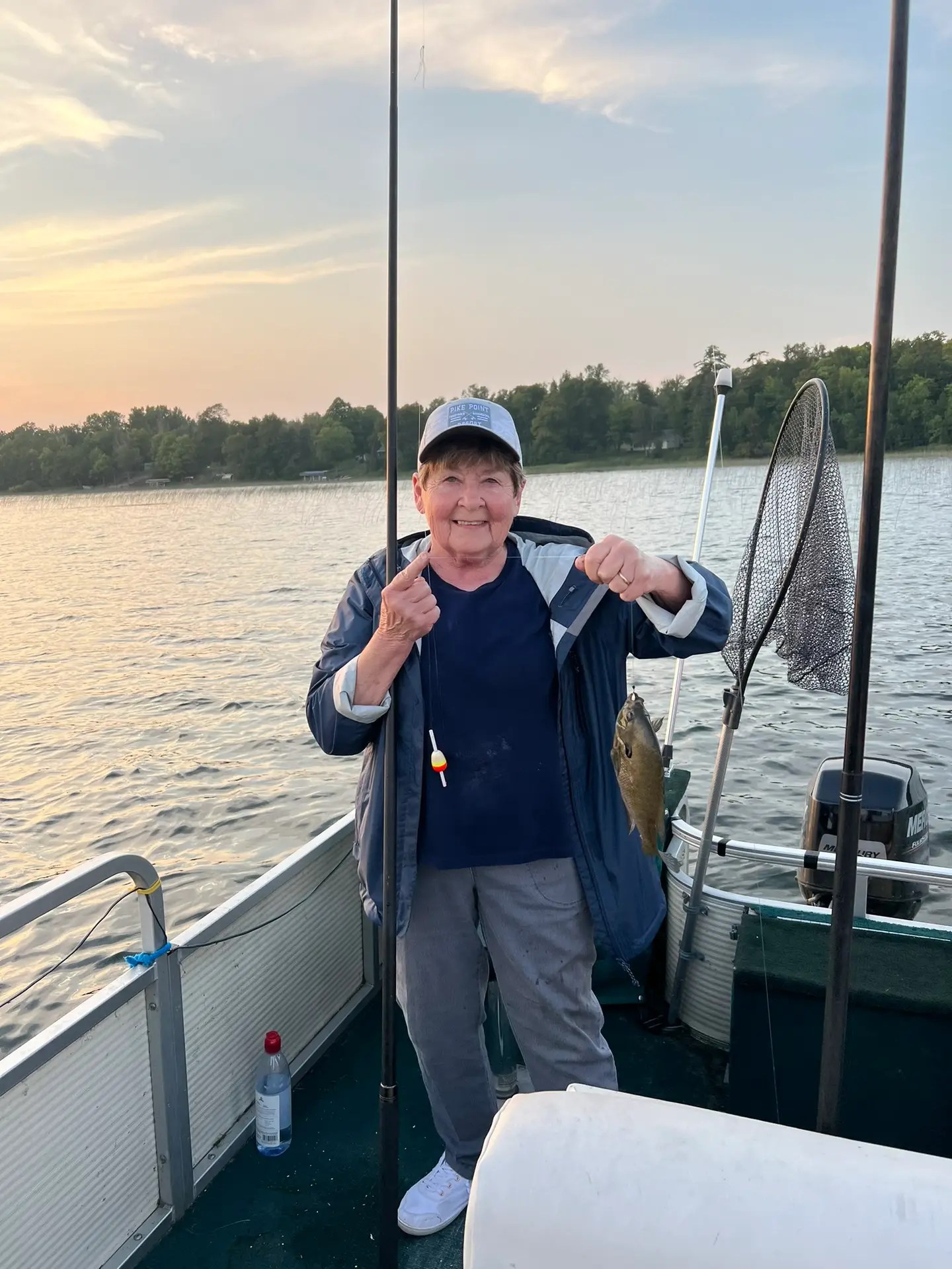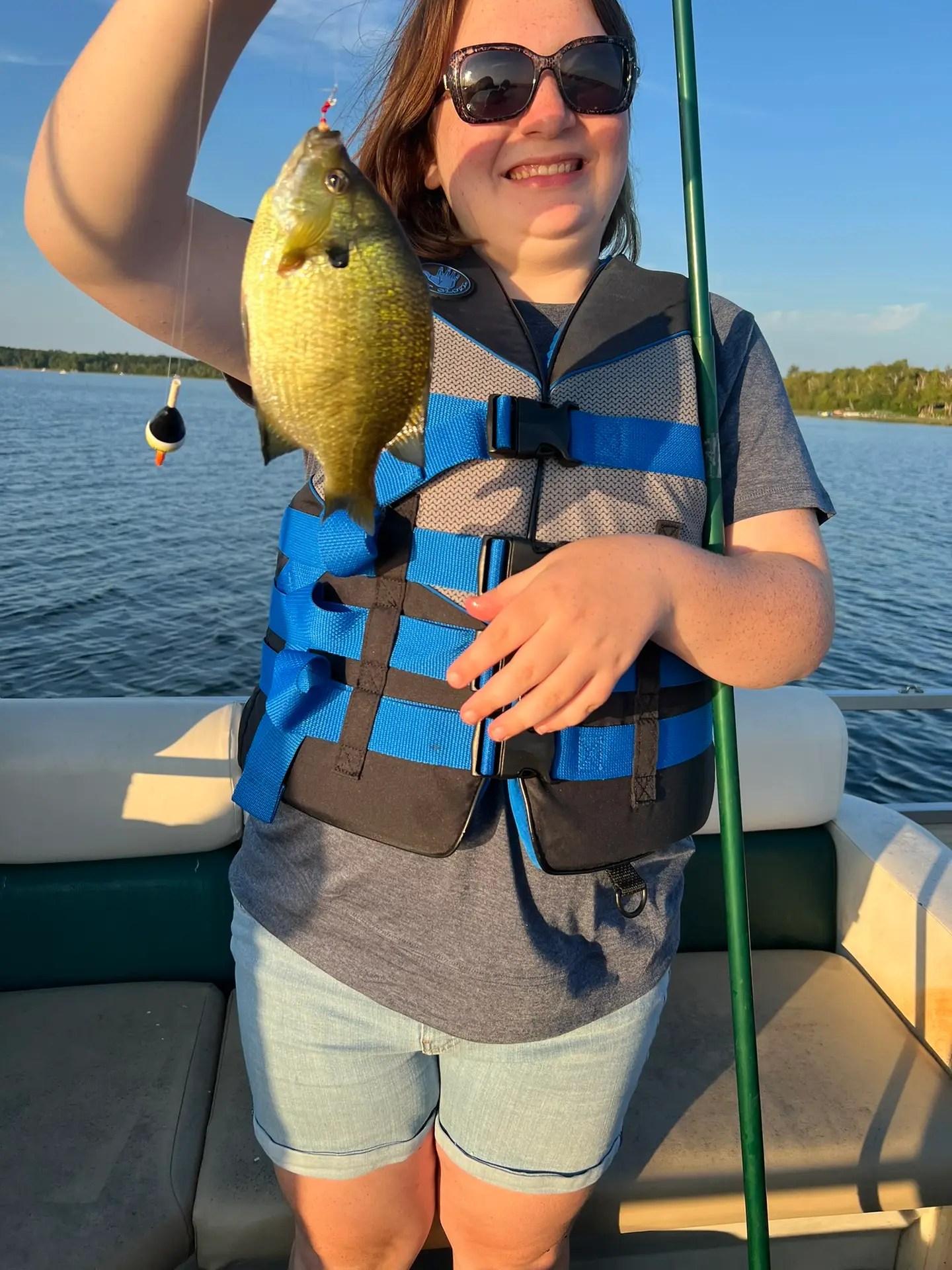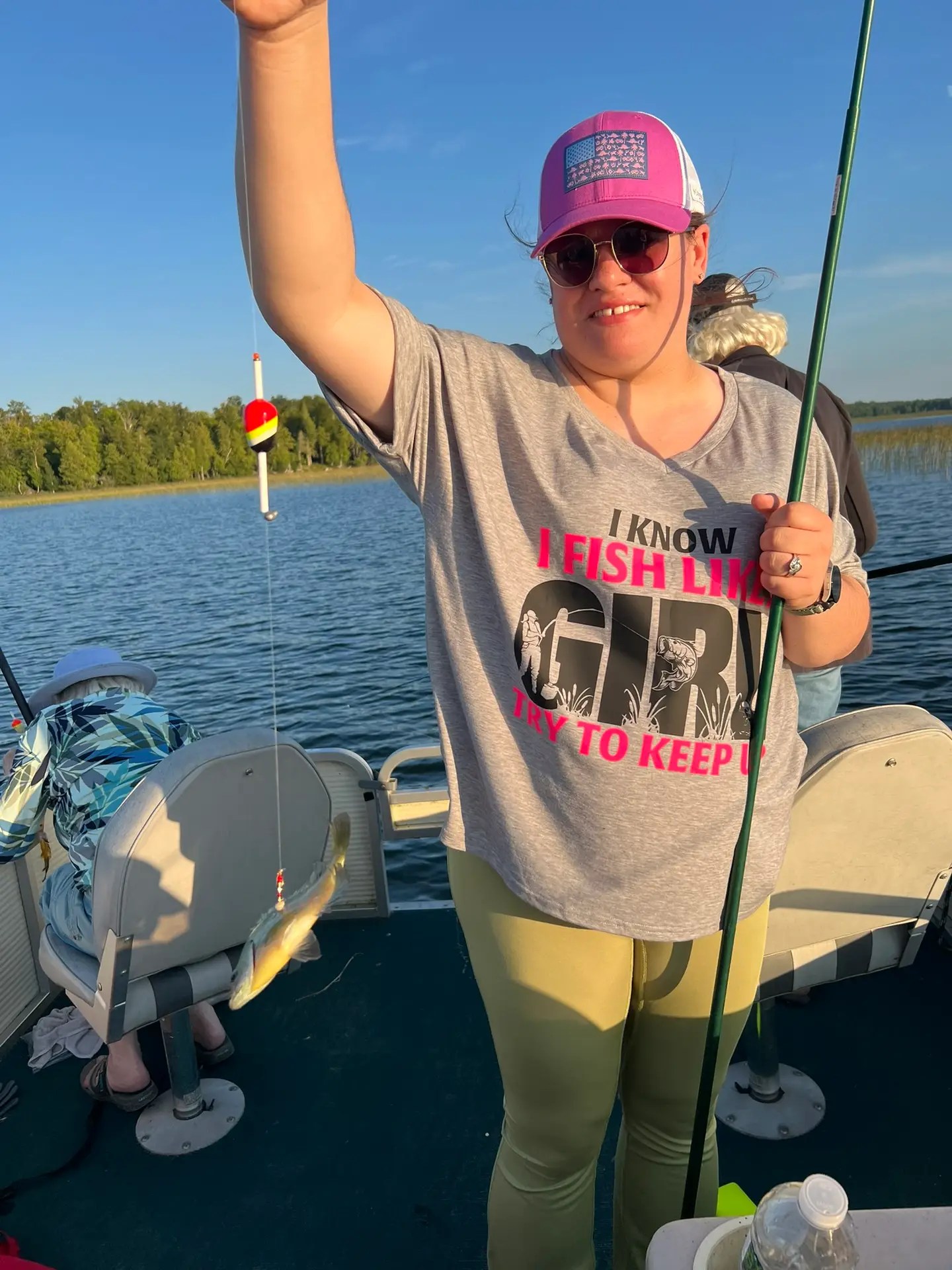 Mandy takes the ladies at the resort out on the pontoon and teaches them how to use cane poles to catch those really BIG bluegills and sunfish. There have been times that a walleye or northern have been caught also. And for those that don’t touch fish or bait; no worries, as Mandy baits the hooks and takes the fish off.