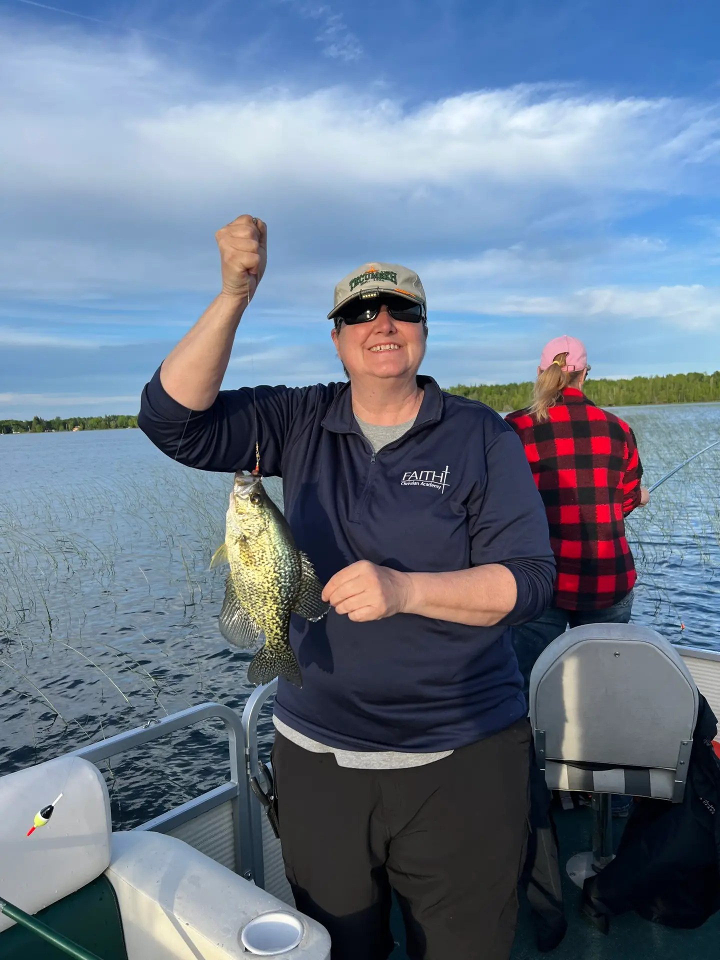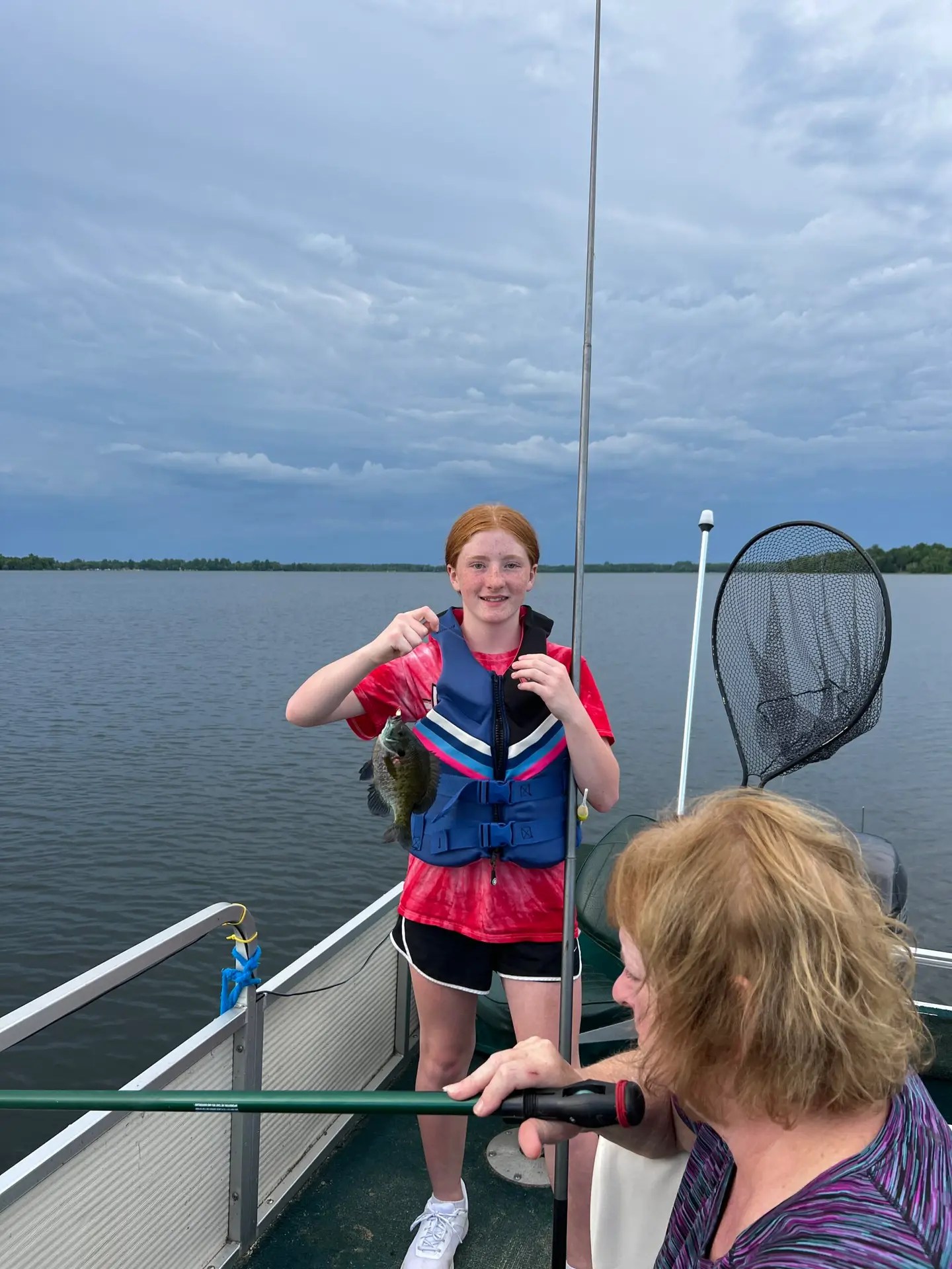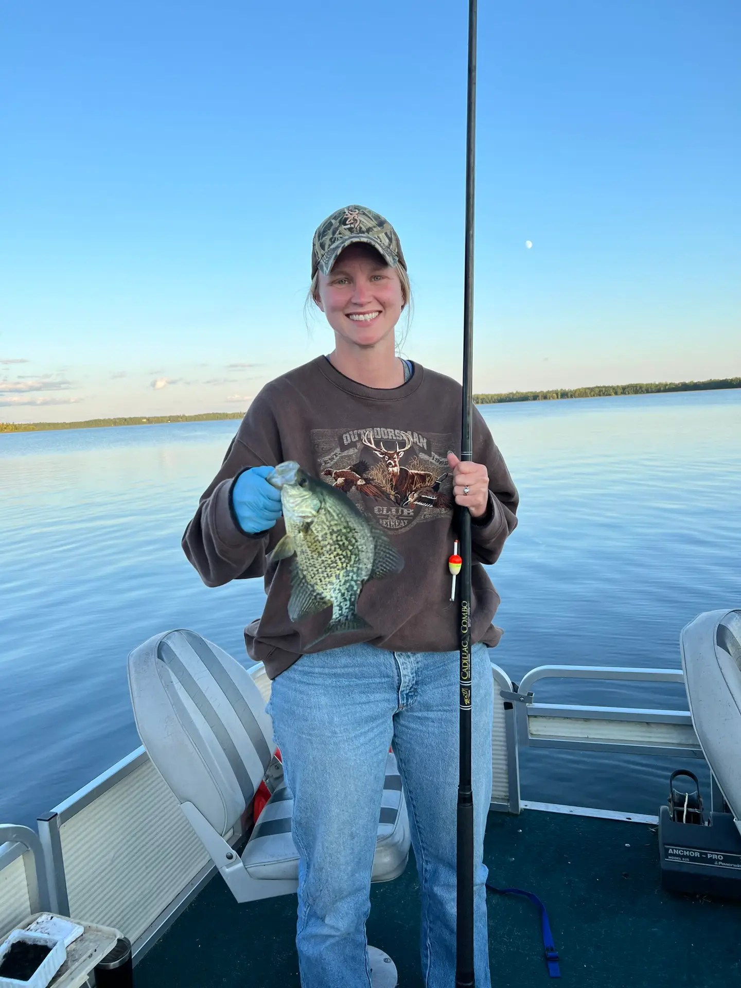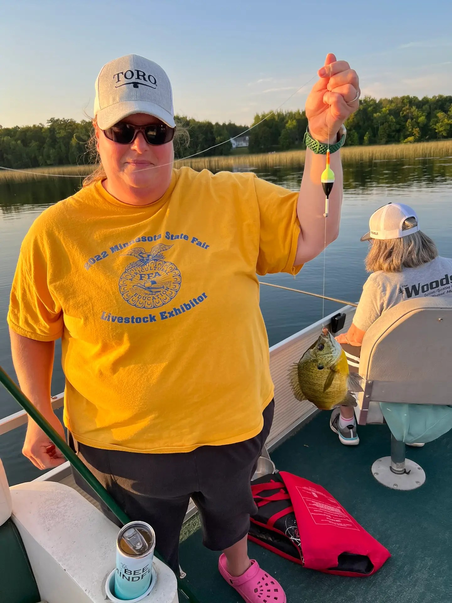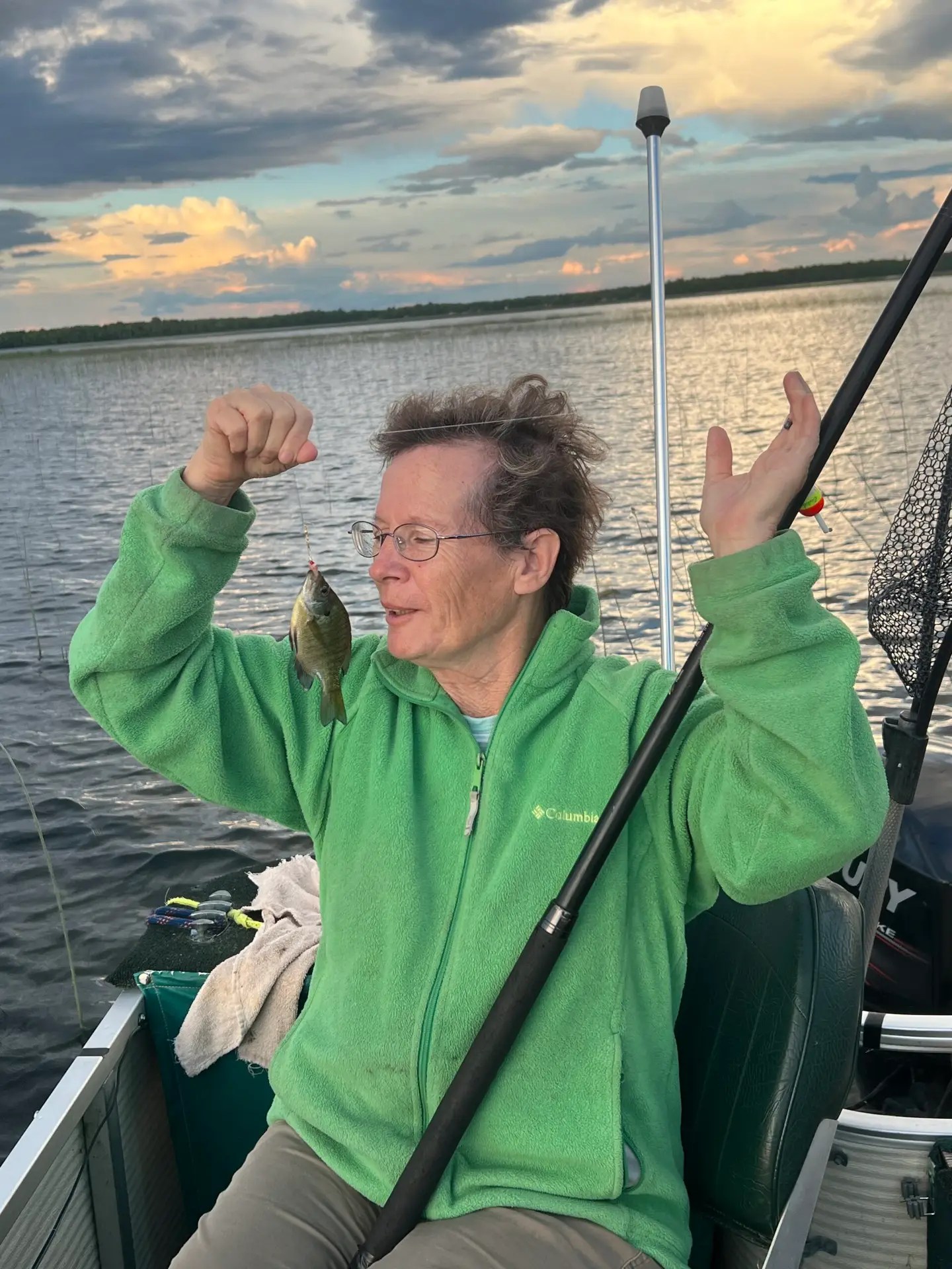 Mandy takes the ladies at the resort out on the pontoon and teaches them how to use cane poles to catch those really BIG bluegills and sunfish. There have been times that a walleye or northern have been caught also. And for those that don’t touch fish or bait; no worries, as Mandy baits the hooks and takes the fish off.