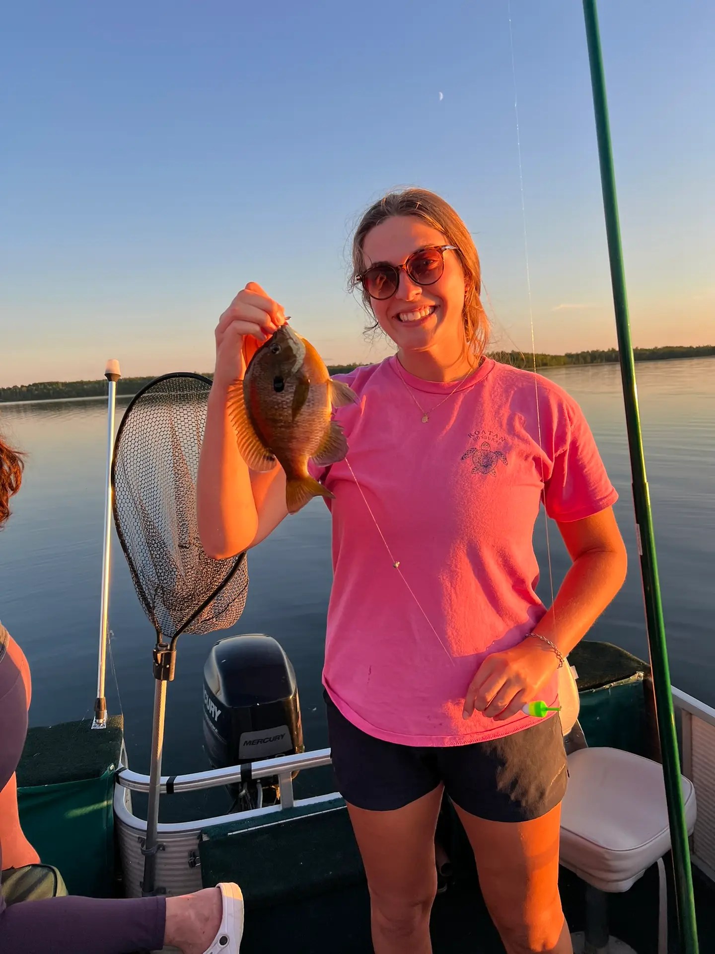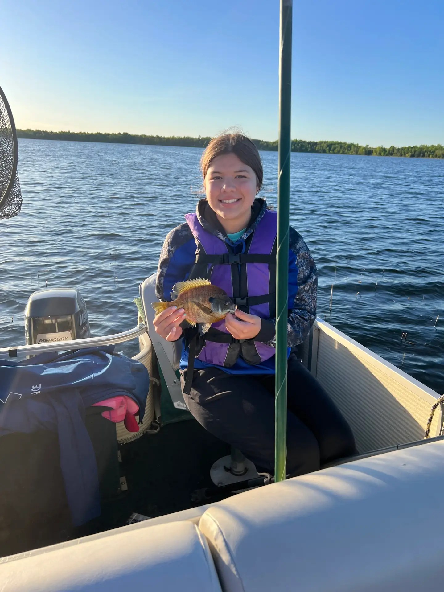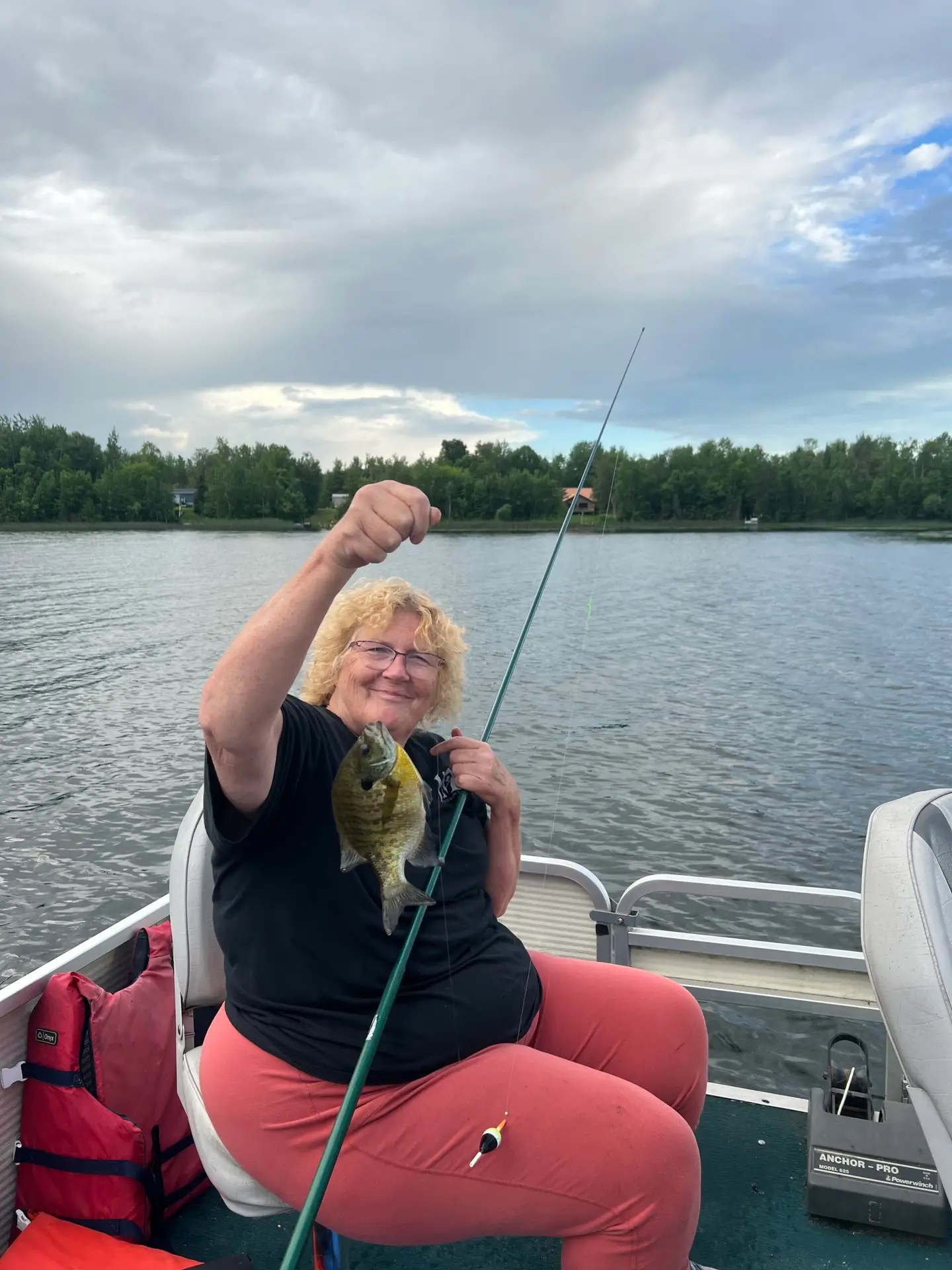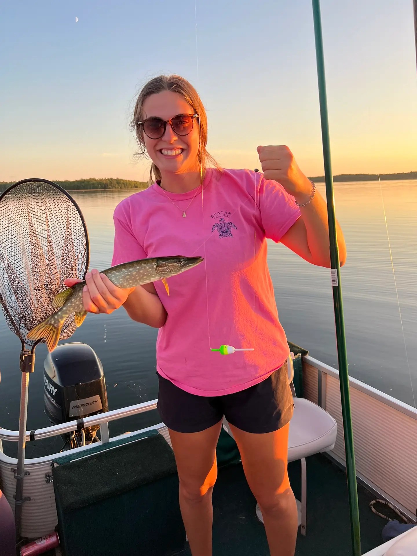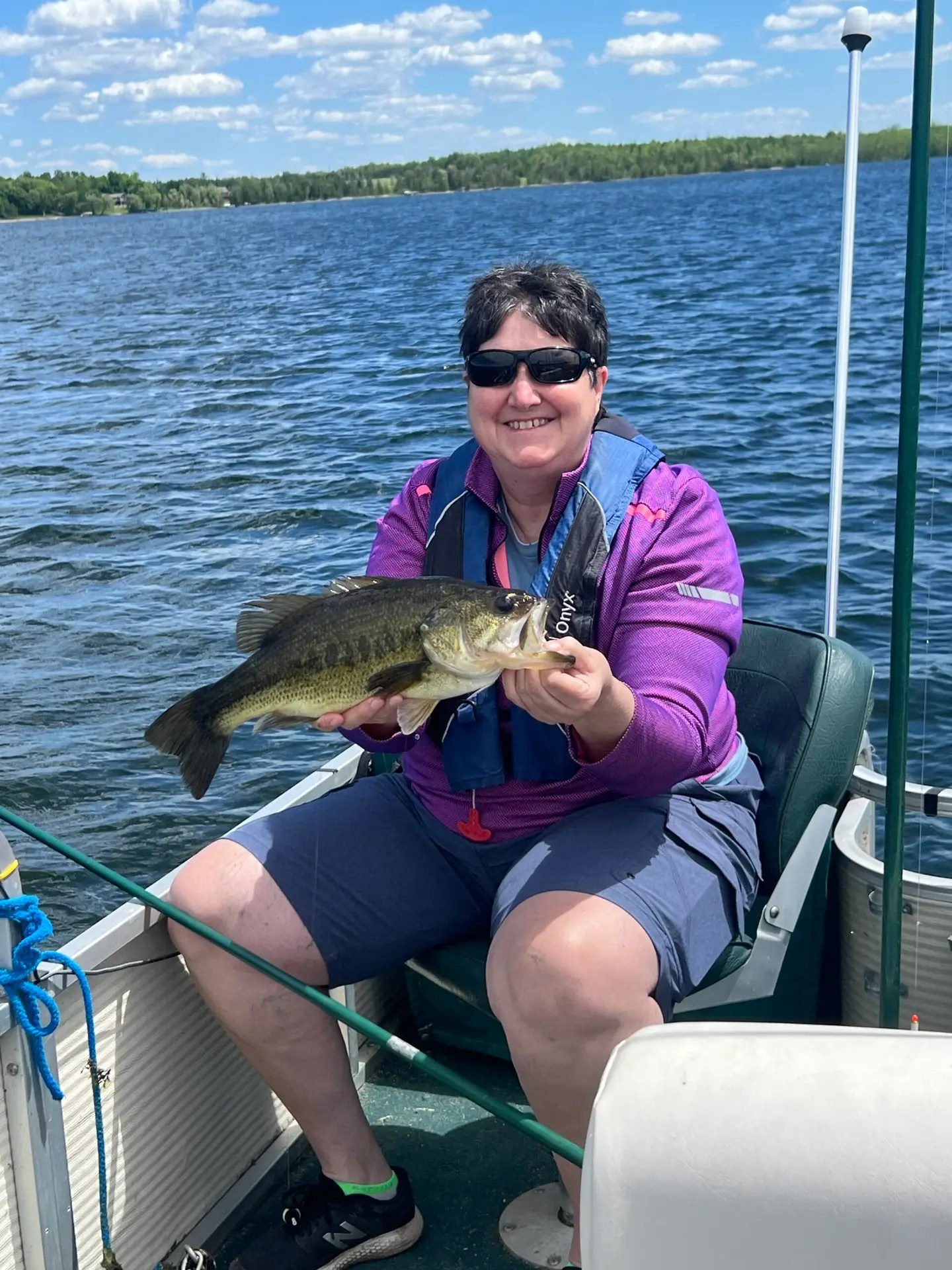 Mandy takes the ladies at the resort out on the pontoon and teaches them how to use cane poles to catch those really BIG bluegills and sunfish. There have been times that a walleye or northern have been caught also. And for those that don’t touch fish or bait; no worries, as Mandy baits the hooks and takes the fish off.