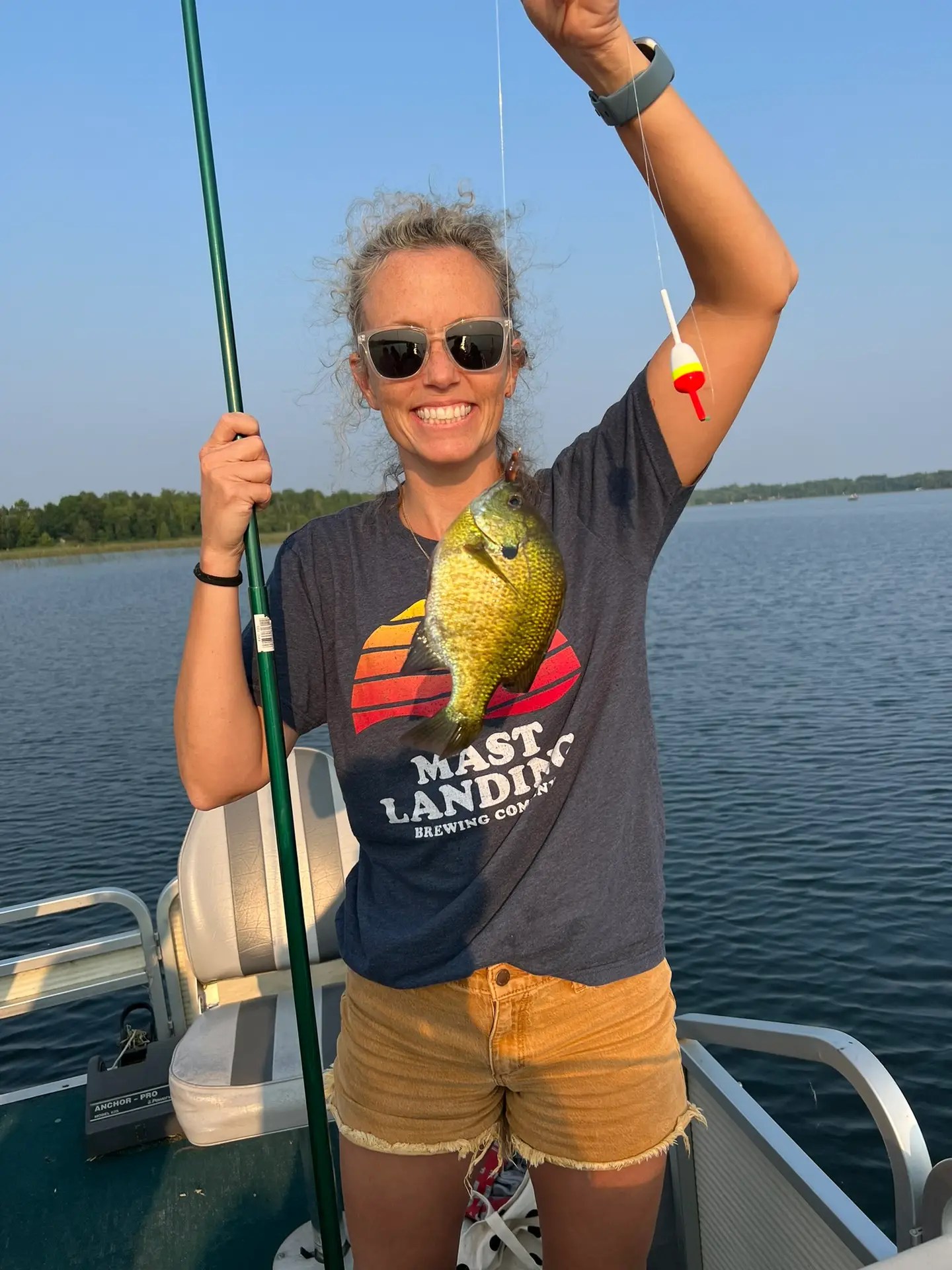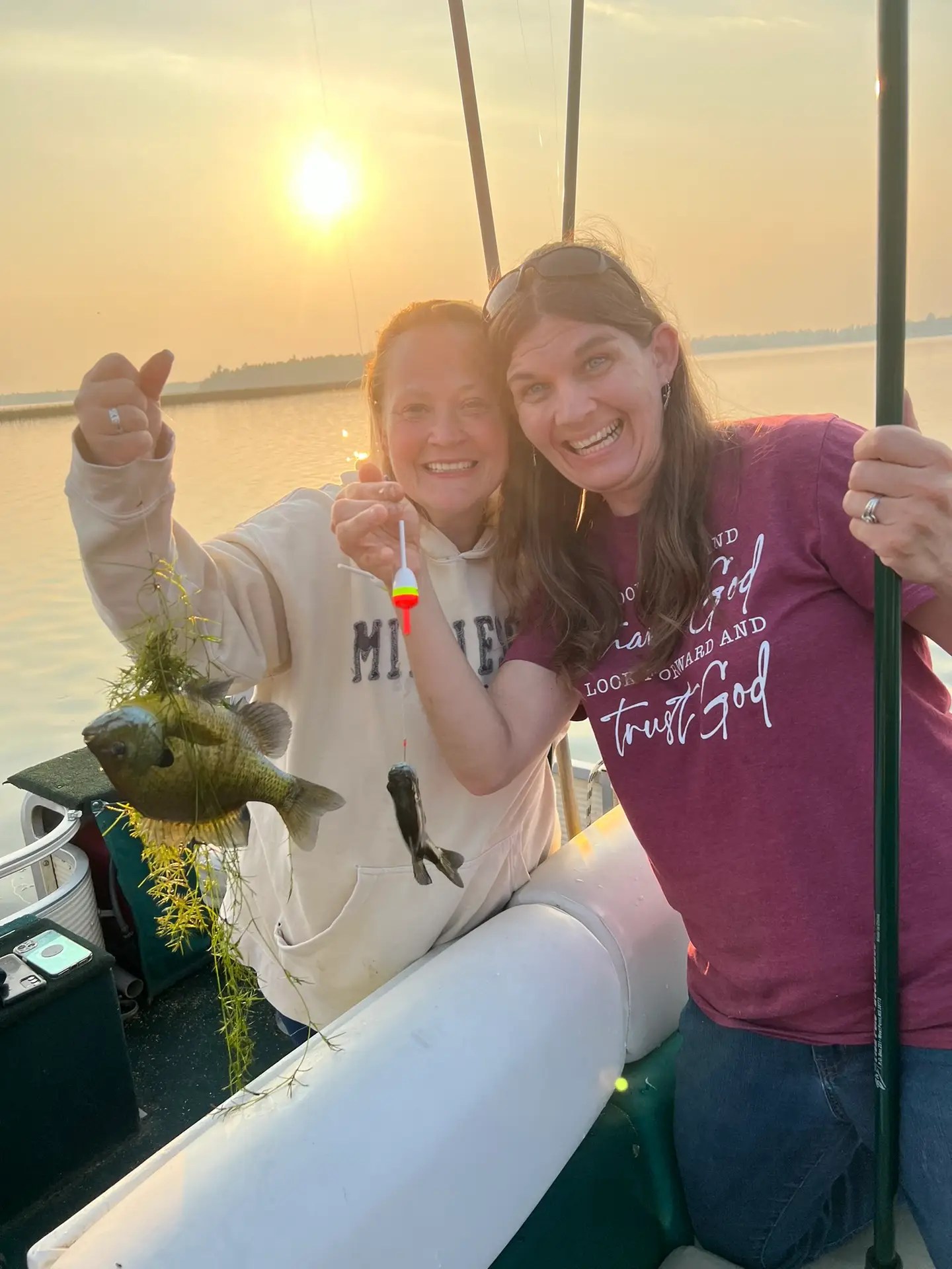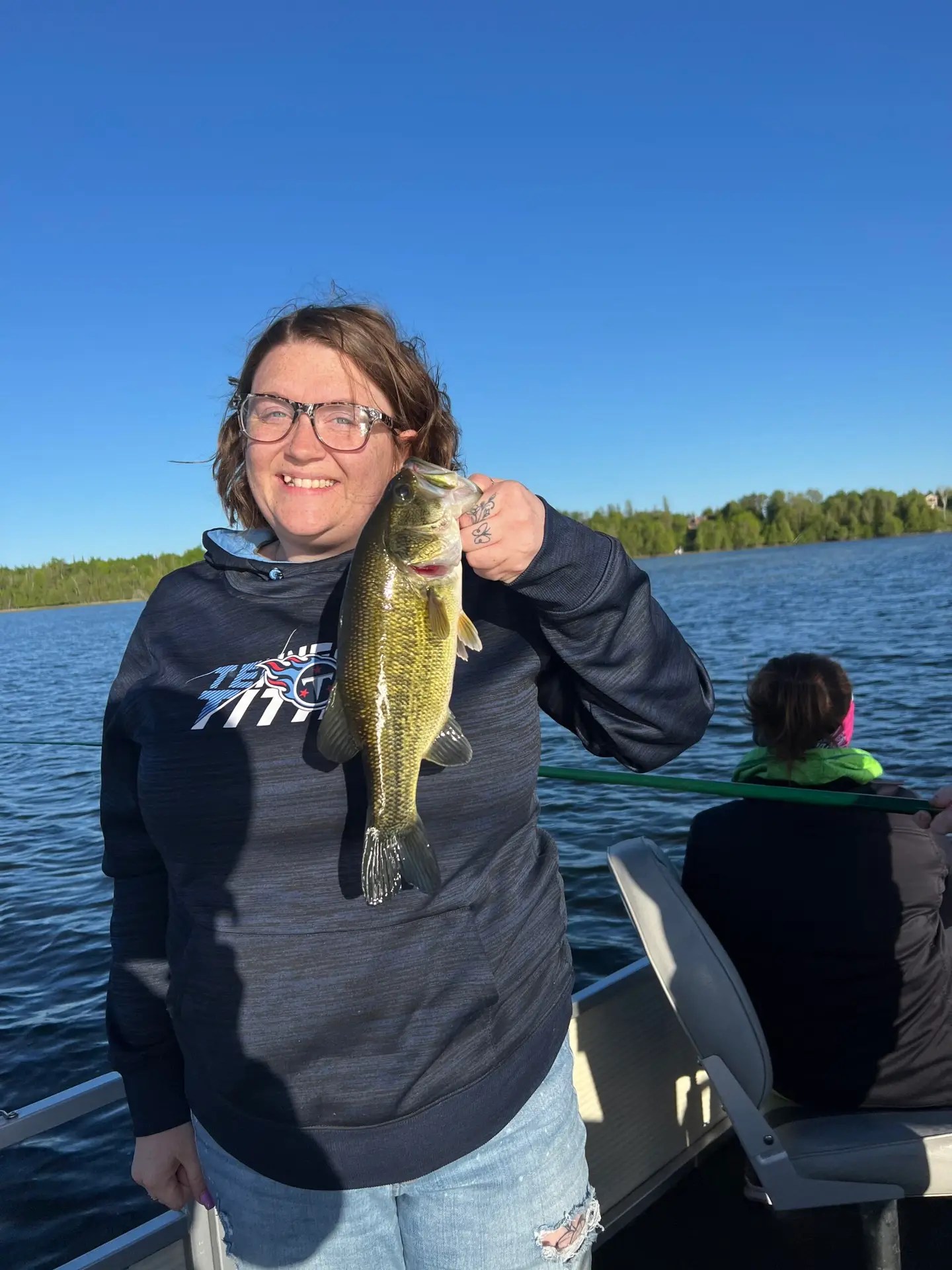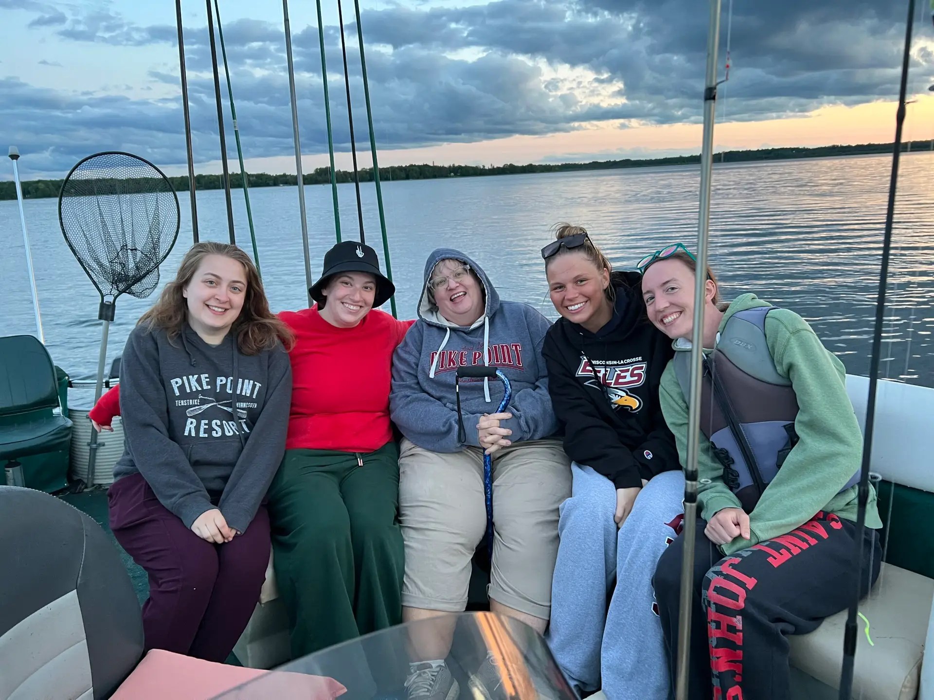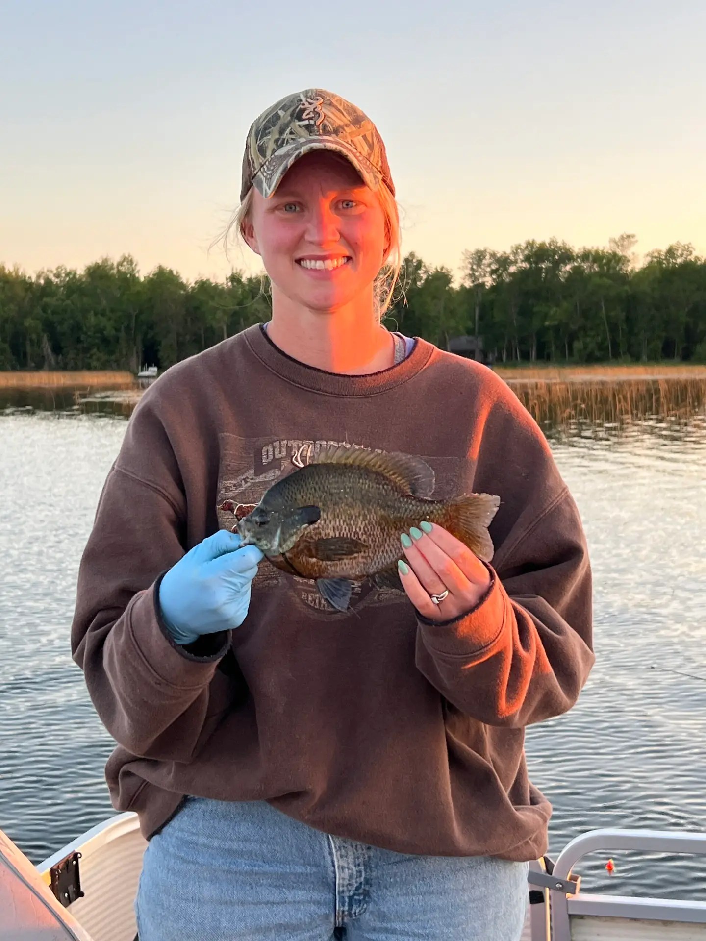 Mandy takes the ladies at the resort out on the pontoon and teaches them how to use cane poles to catch those really BIG bluegills and sunfish. There have been times that a walleye or northern have been caught also. And for those that don’t touch fish or bait; no worries, as Mandy baits the hooks and takes the fish off.