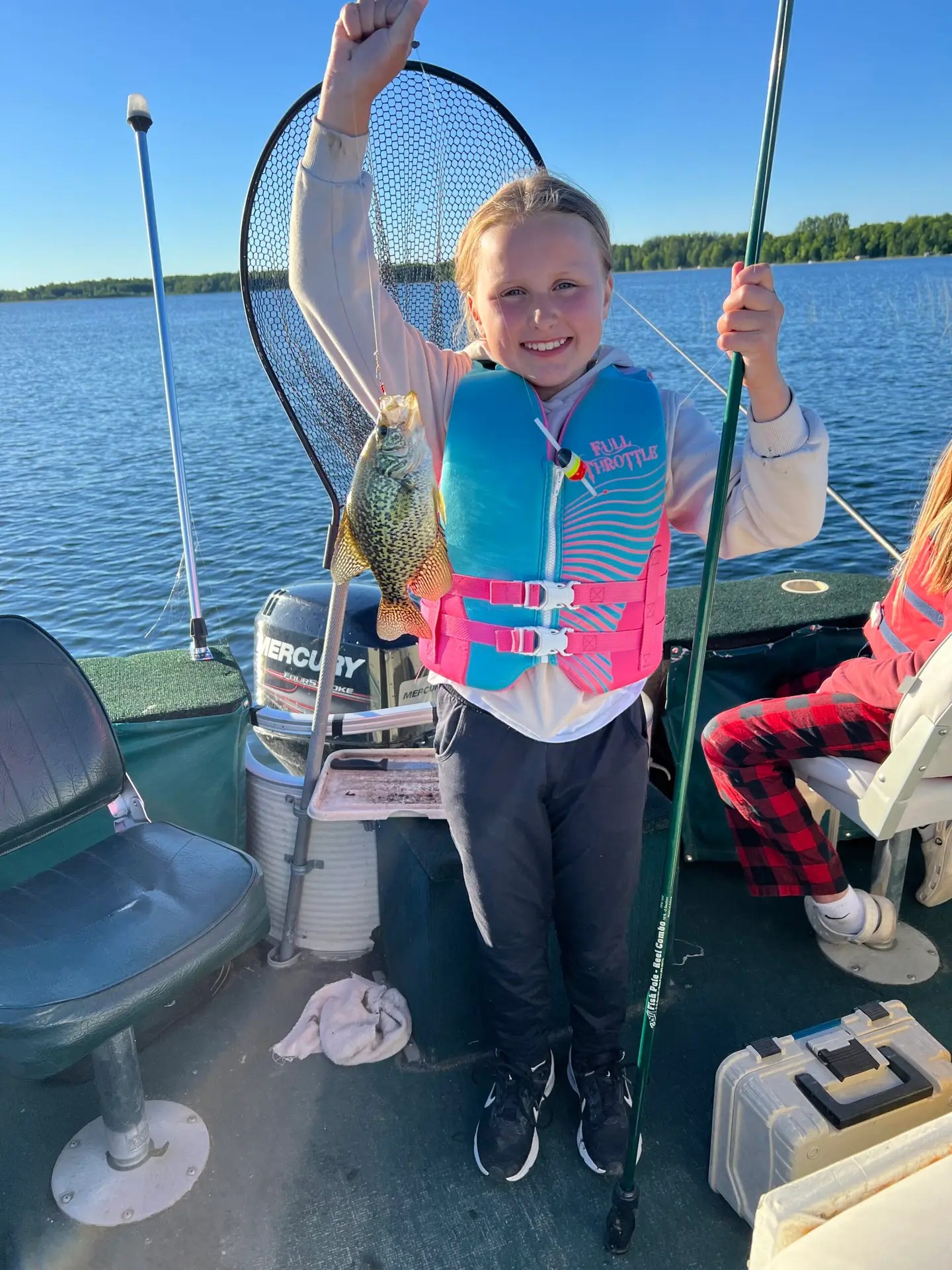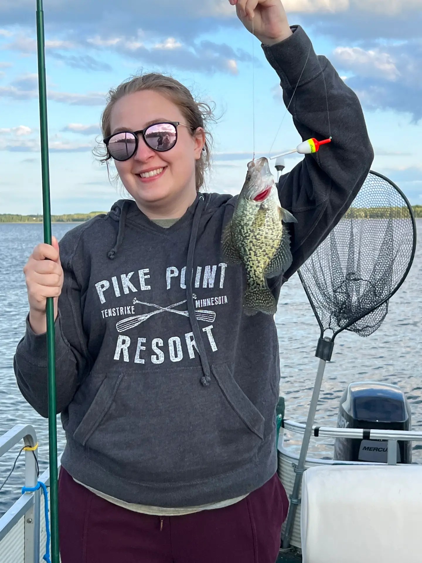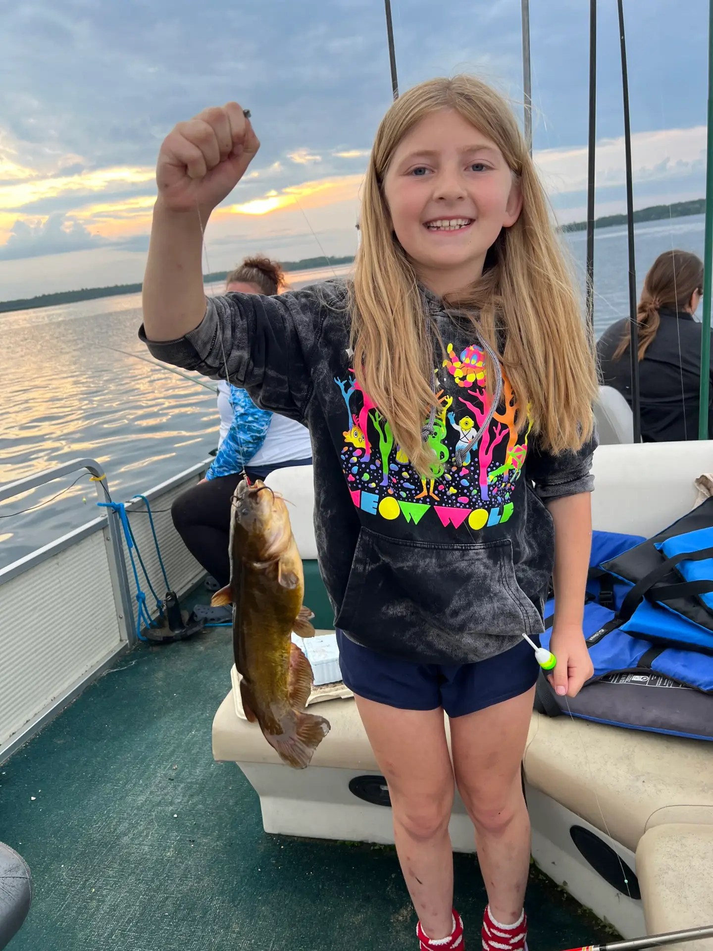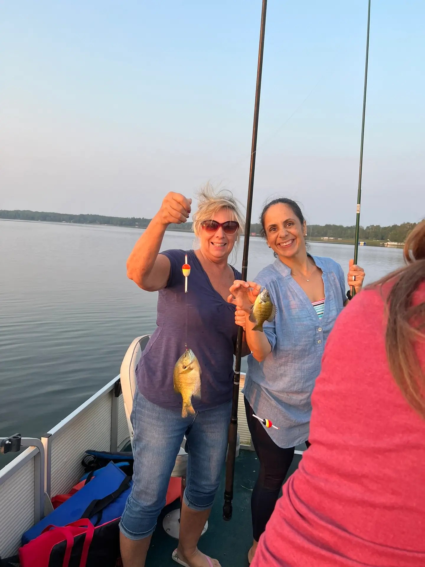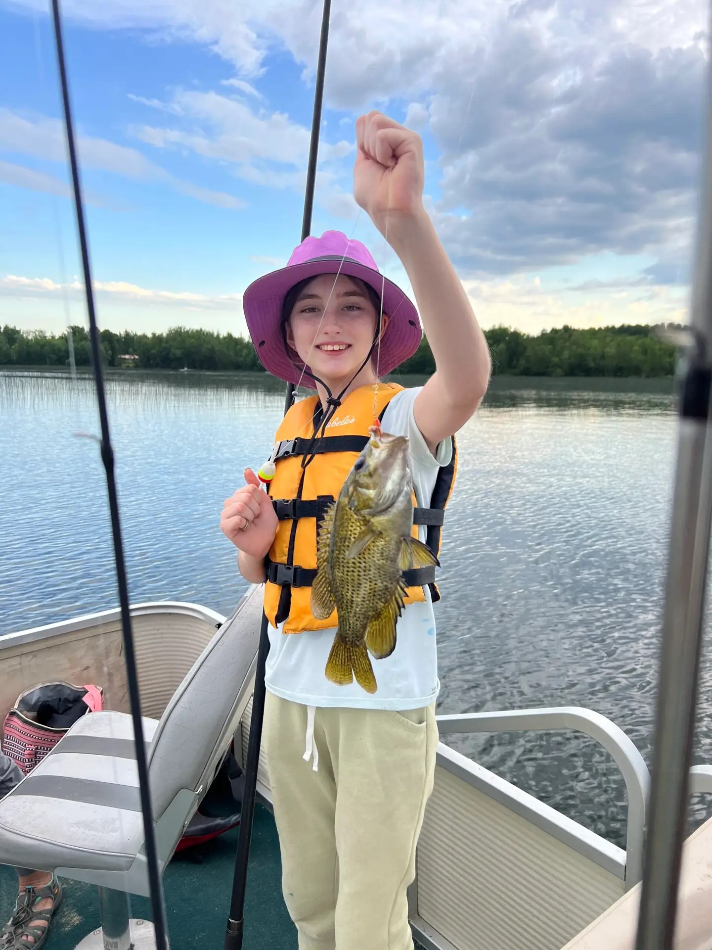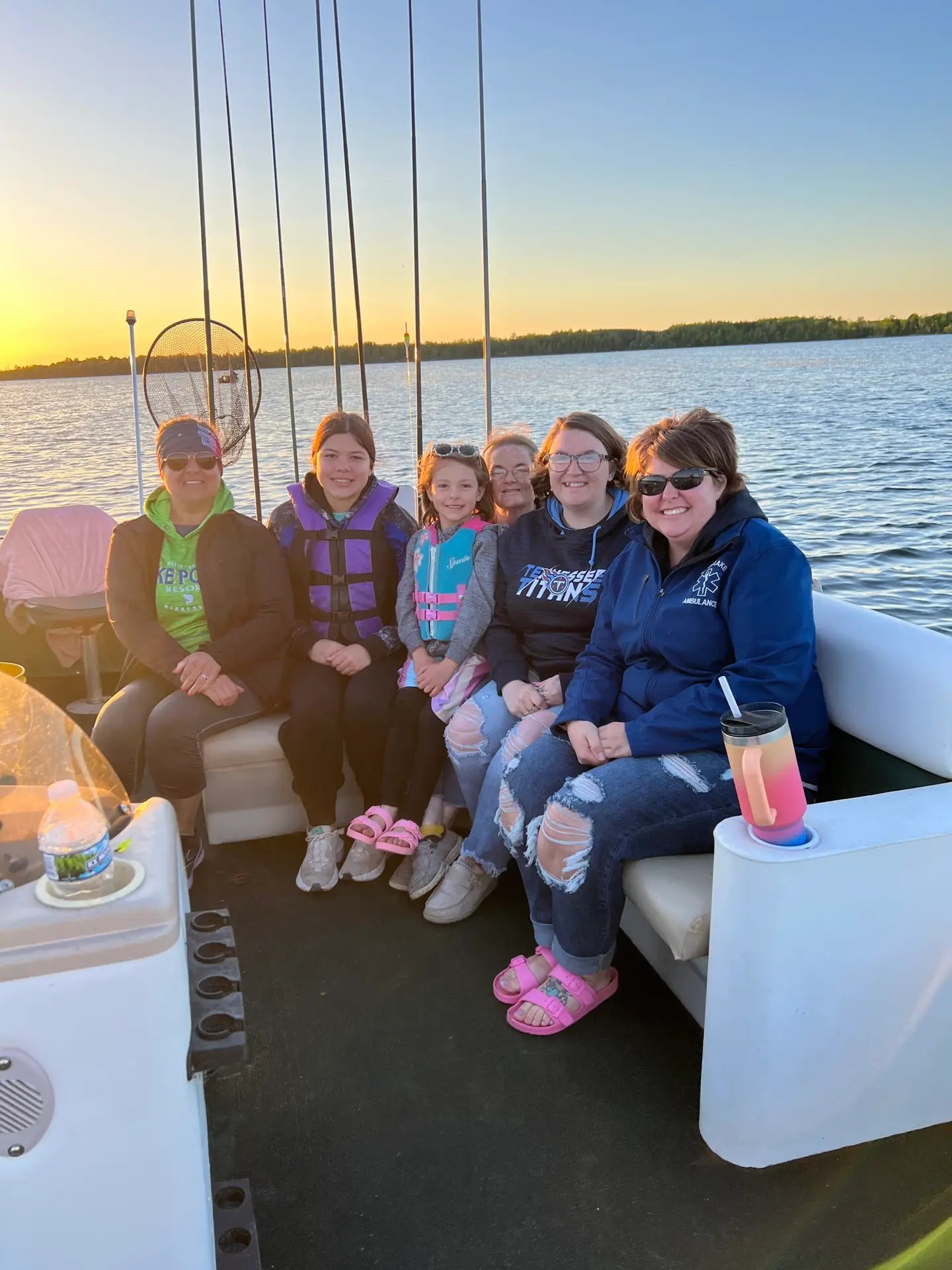 Mandy takes the ladies at the resort out on the pontoon and teaches them how to use cane poles to catch those really BIG bluegills and sunfish. There have been times that a walleye or northern have been caught also. And for those that don’t touch fish or bait; no worries, as Mandy baits the hooks and takes the fish off.