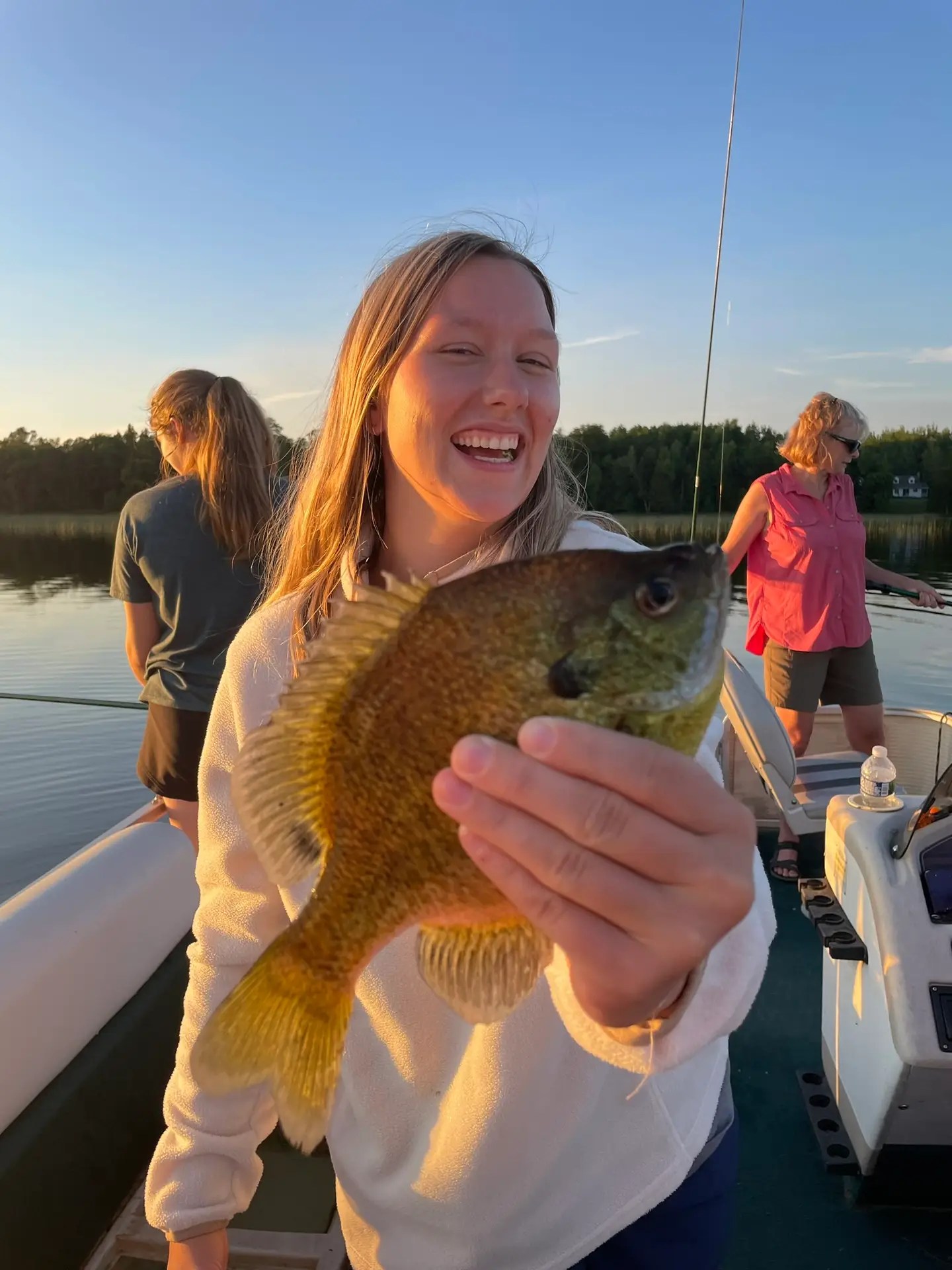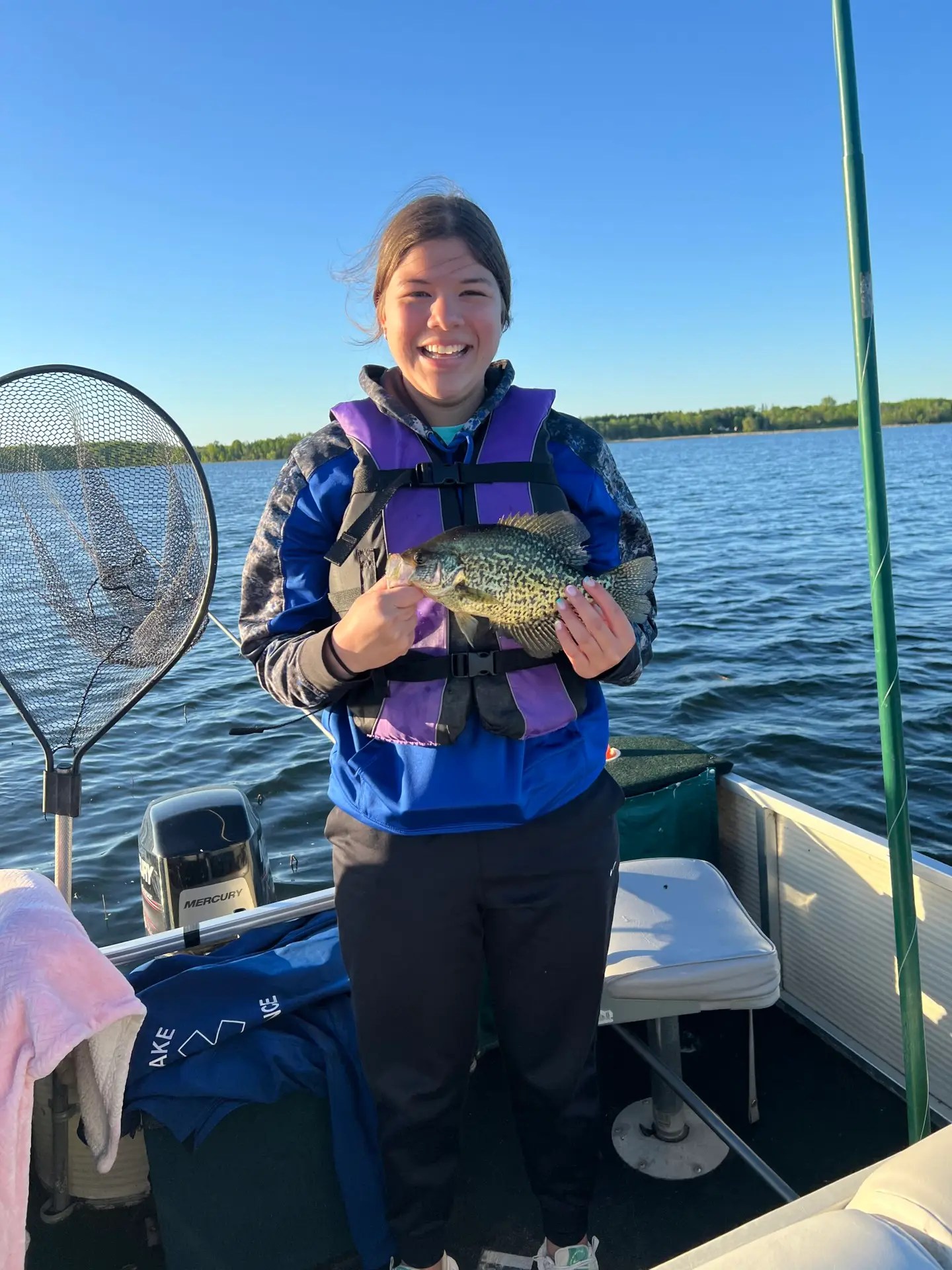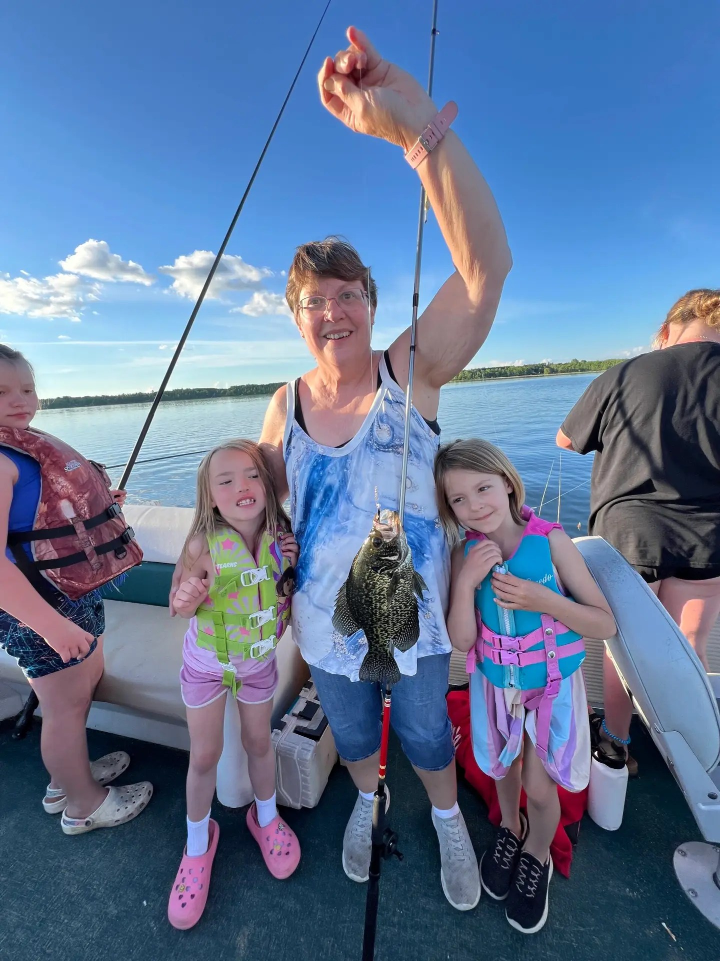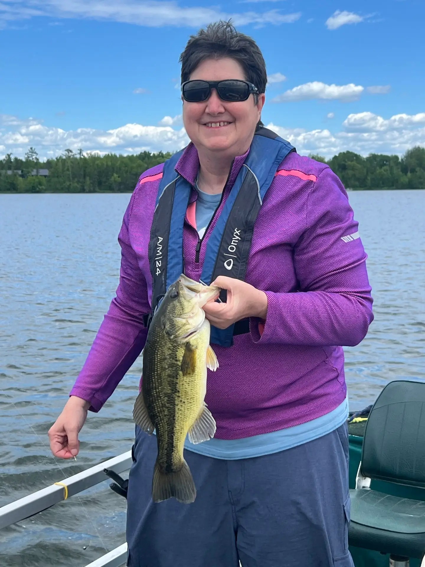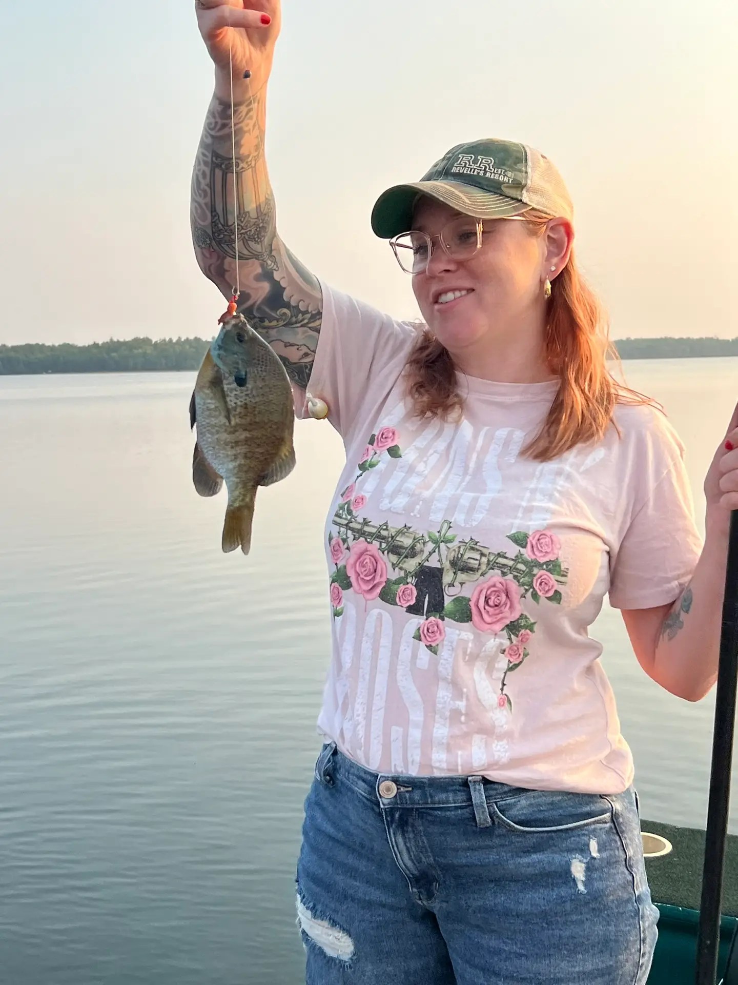Mandy takes the ladies at the resort out on the pontoon and teaches them how to use cane poles to catch those really BIG bluegills and sunfish. There have been times that a walleye or northern have been caught also. And for those that don’t touch fish or bait; no worries, as Mandy baits the hooks and takes the fish off.