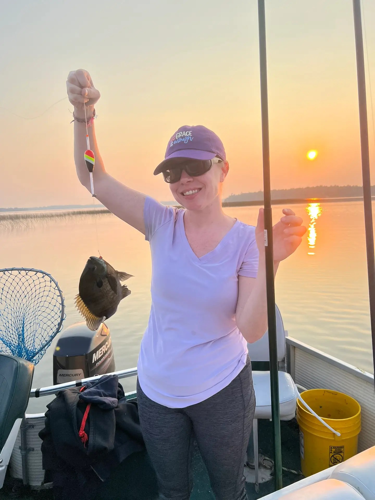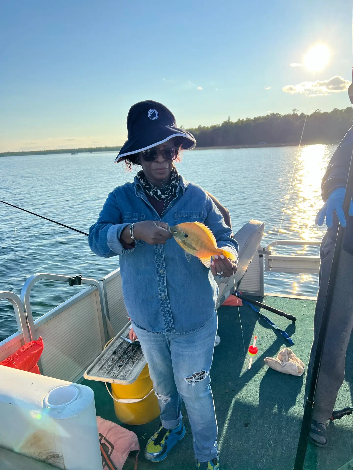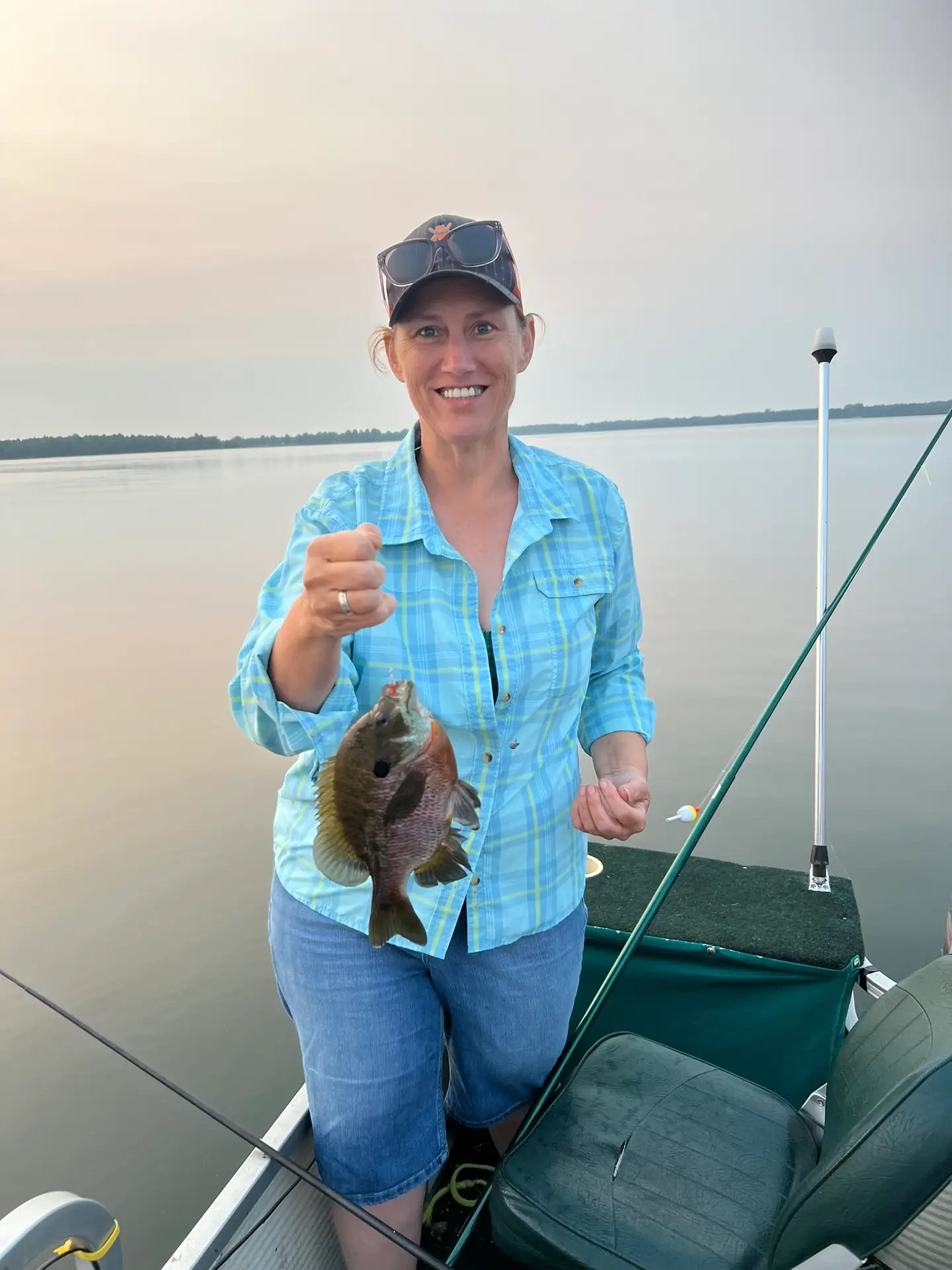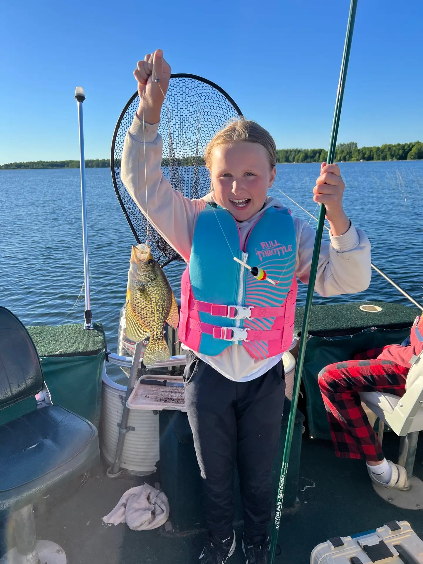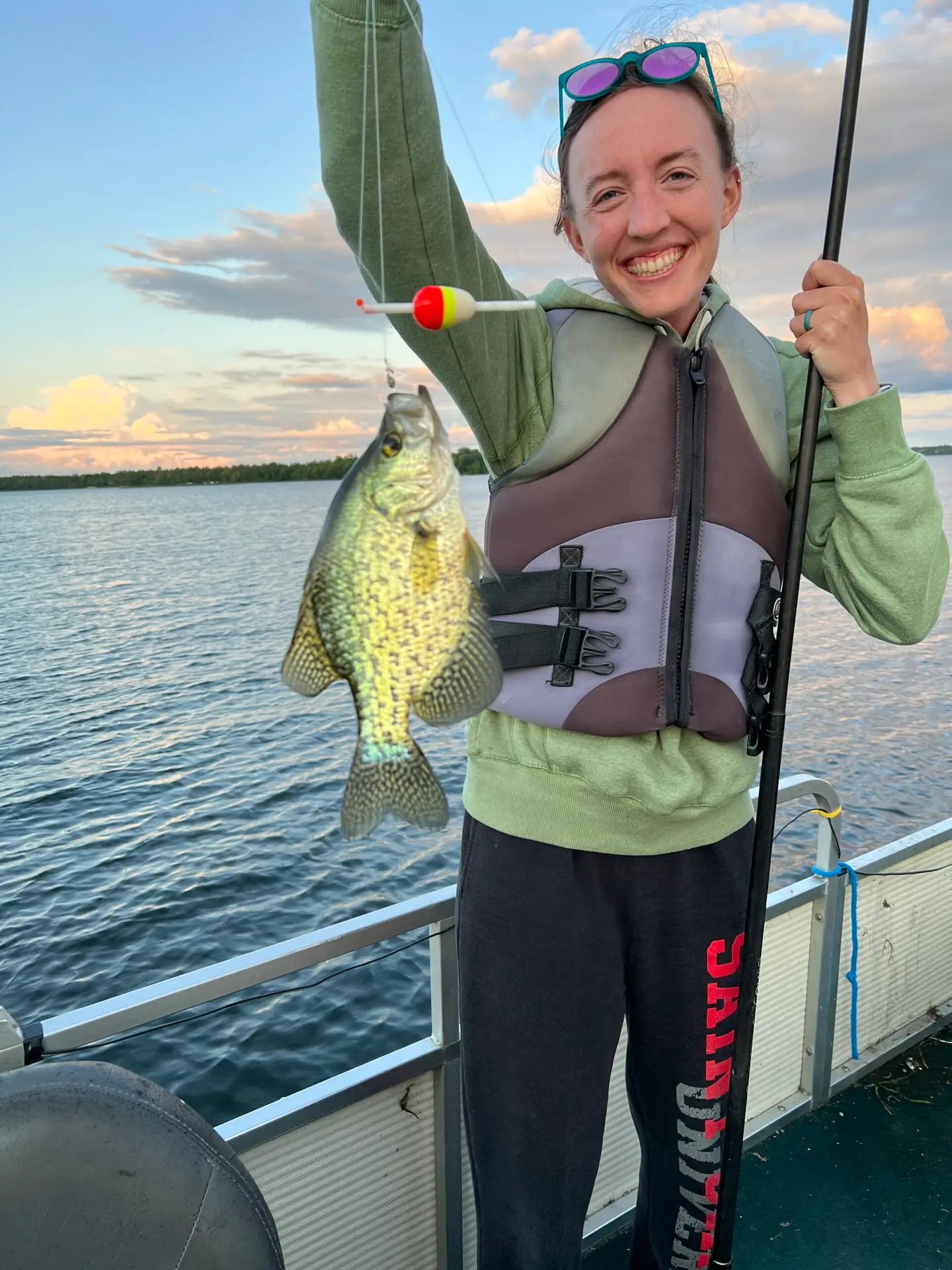 Mandy takes the ladies at the resort out on the pontoon and teaches them how to use cane poles to catch those really BIG bluegills and sunfish. There have been times that a walleye or northern have been caught also. And for those that don’t touch fish or bait; no worries, as Mandy baits the hooks and takes the fish off.